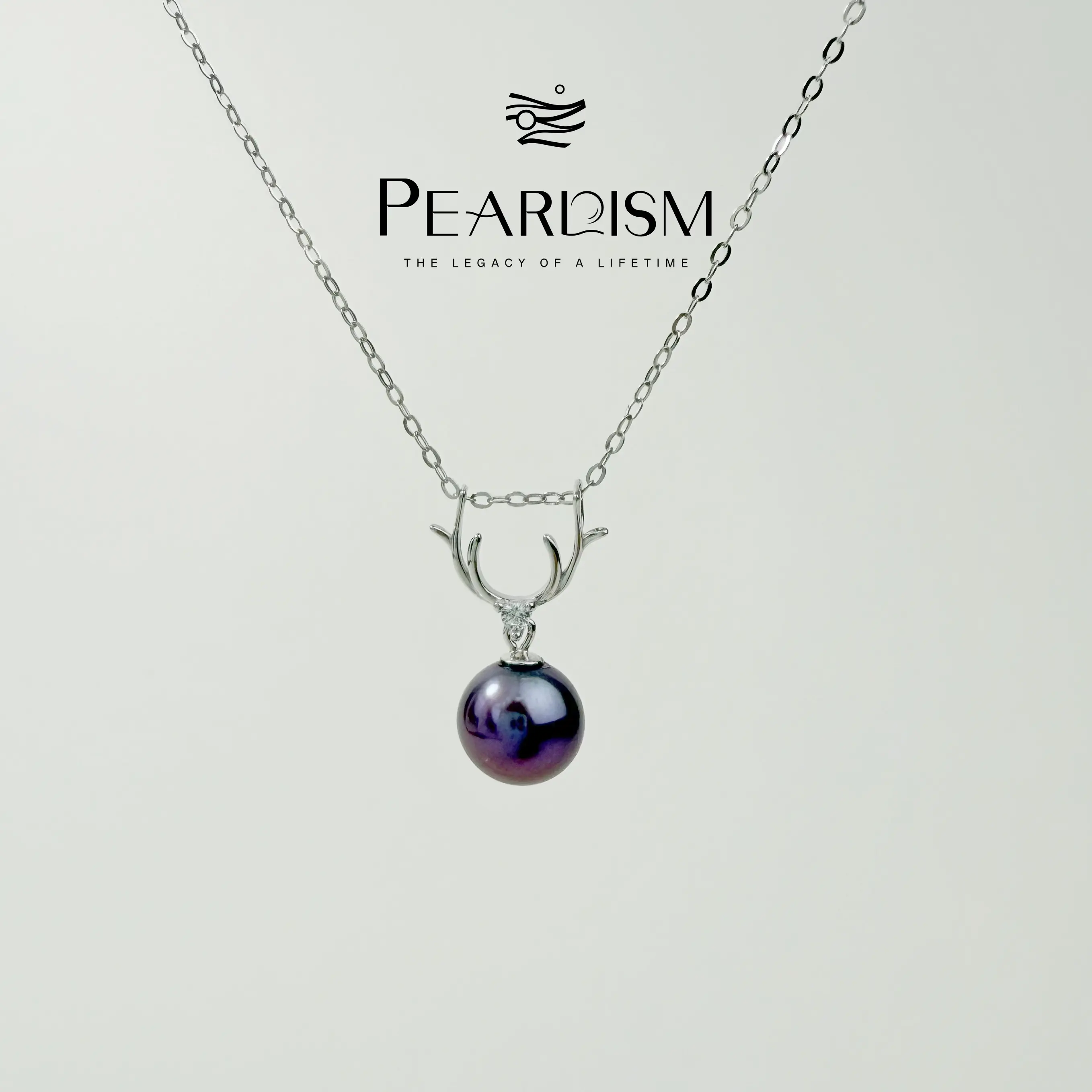 5. 【Adee】PEARLISM S925 Silver Reindeer Pendant Necklace | 8-9mm Freshwater Edison Pearl, Bonus Silver Chain Included-OFEP002