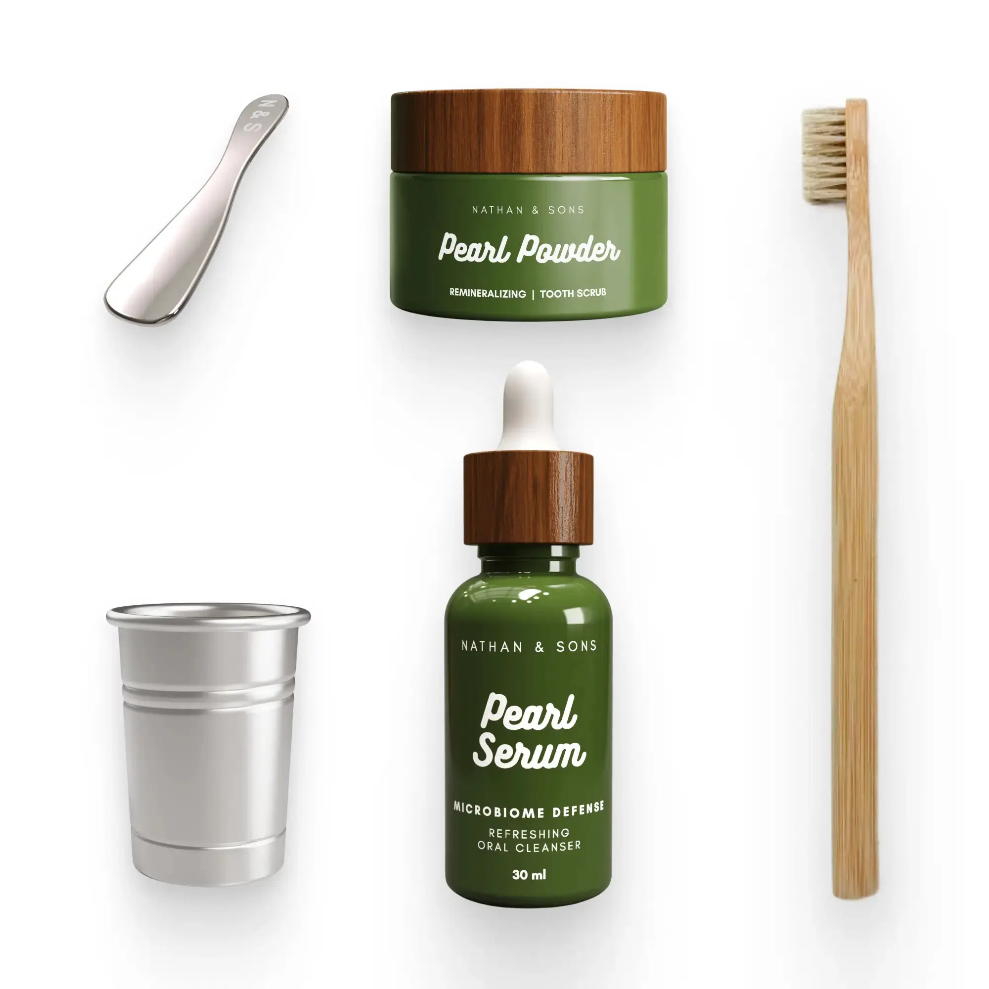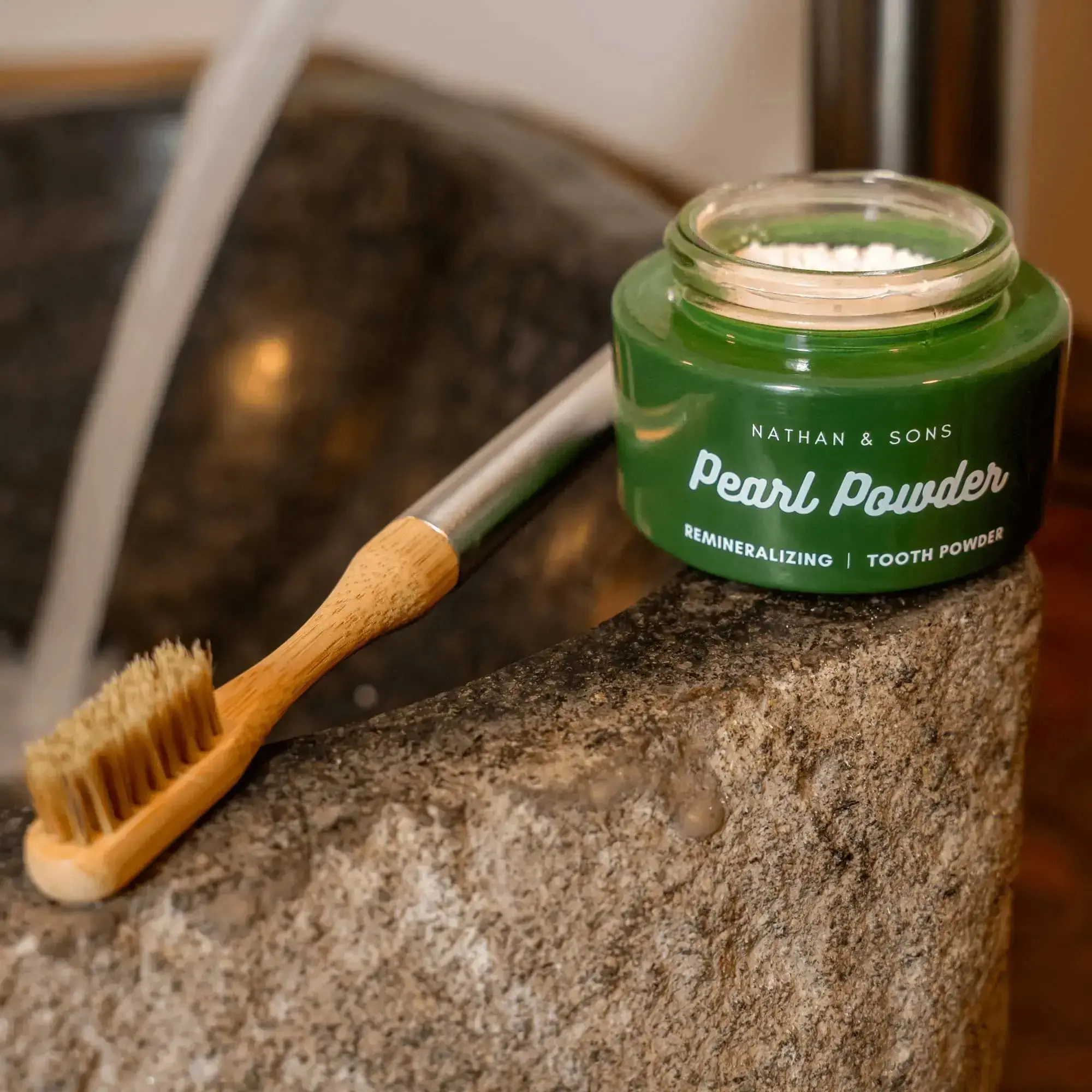 Turn your brushing routine into an elevated daily ritual with our Pearl Powder, Pearl Serum, and precision oral care tools - a natural, plastic-free line-up that delivers visibly whiter, stronger teeth.