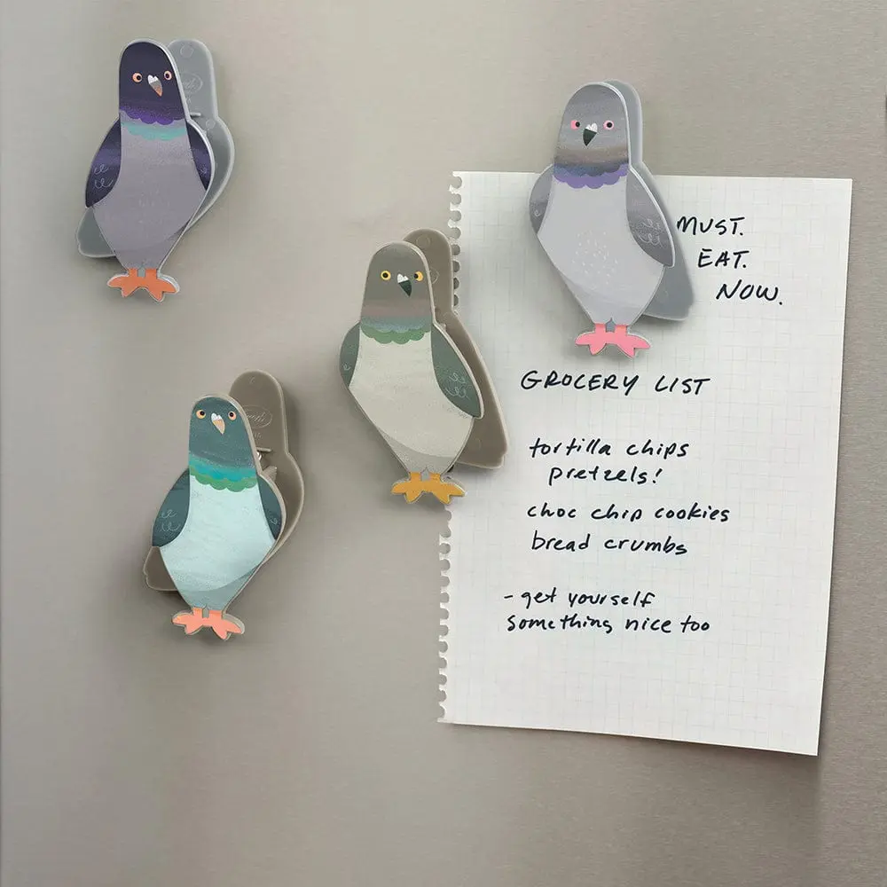Peckish bag clips use their street smarts to keep a tight seal on your snacks. Each pigeon clip is constructed from durable ABS plastic with a magnetic back that looks coo on the fridge too! Packed in a set of 4 on an illustrative, backer card.