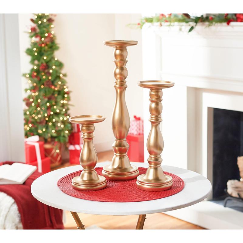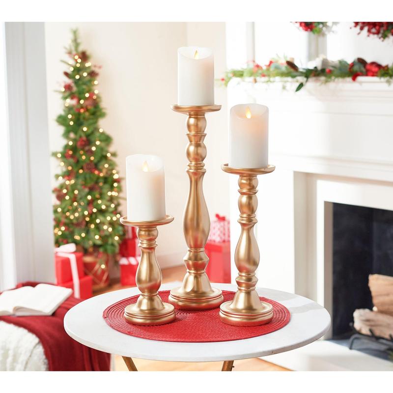 Decorate your home with the shimmer and shine of these pedestal flameless candle holders. The versatility of their graduating design serves your decorating style for the holiday season and beyond. From the Valerie Parr Hill Collection.