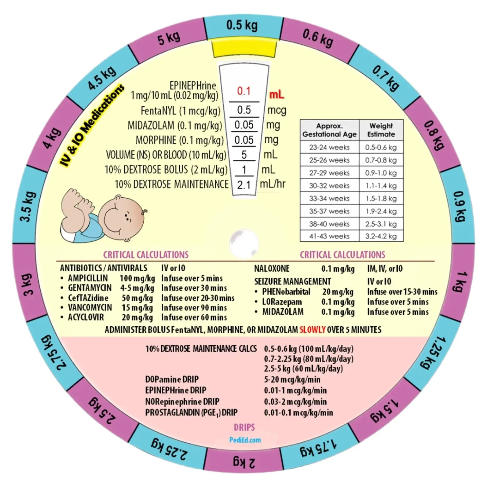 The Pedi-Wheel is a convenient pocket reference tool that puts vital pediatric data at your fingertips. An incredibly valuable reference for medical professionals and students because we’ve compiled volumes of vital pediatric information into this slide chart that is only the size of a compact disc.