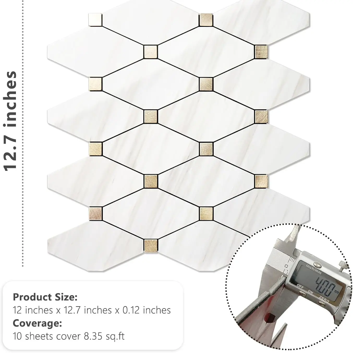 ·EASY INSTALLATION: The kitchen backsplash wall tile features easy-to-cut design and simple interlocking installation perfect for DIY kitchen makeovers. The peel and stick tile backsplash can goes with whatever pattern you like, vertical or horizontal to create a unique and elagance look