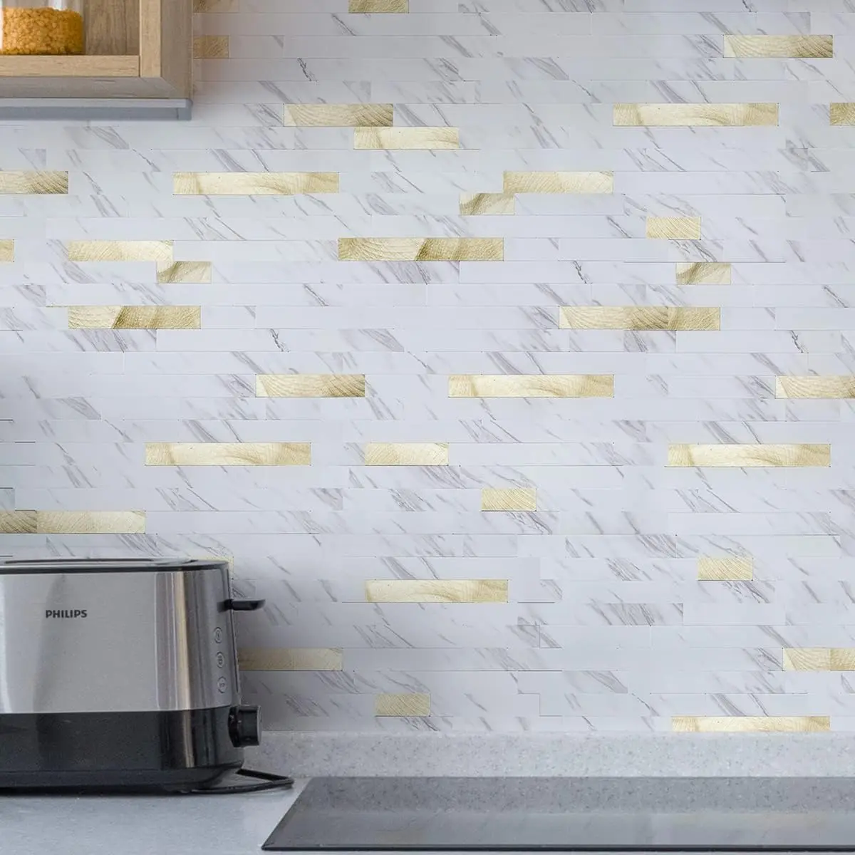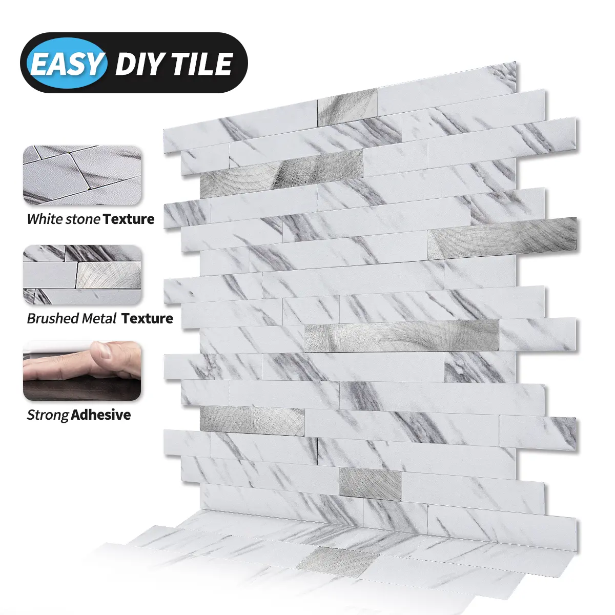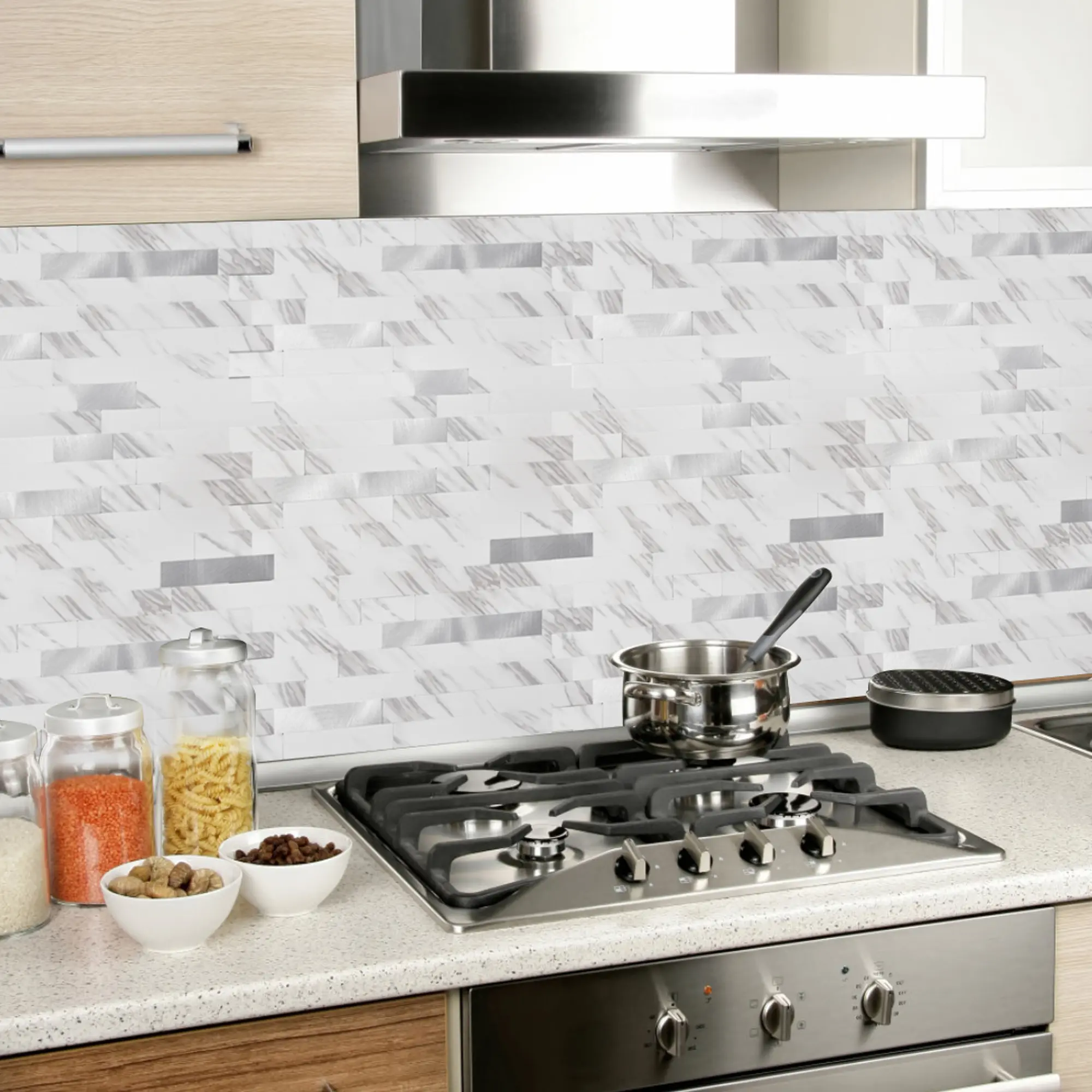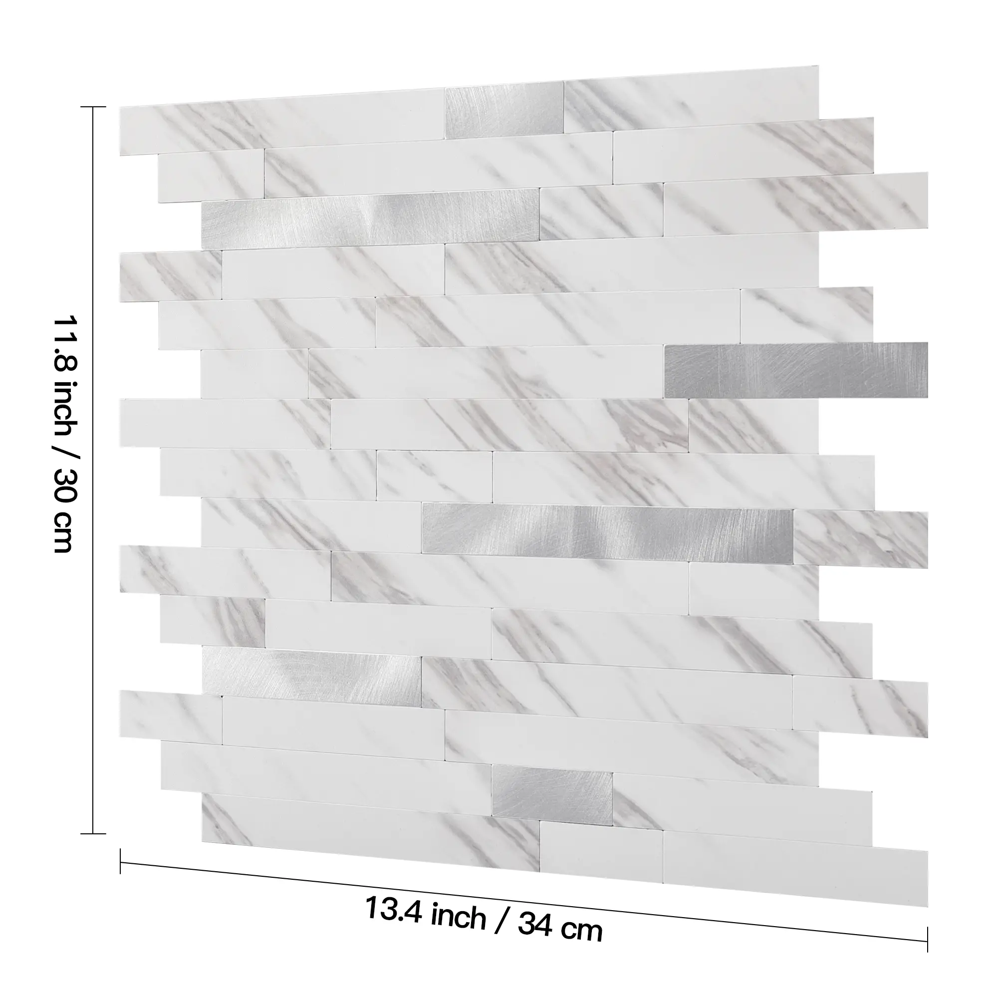 Art3D 10 Sheets 13.4" x 11.8" Peel and Stick Backsplash Tiles for Kitchen & Bathroom, White Marble Tone, Self-Adhesive Drywall Home Peel Stick Wall Panels