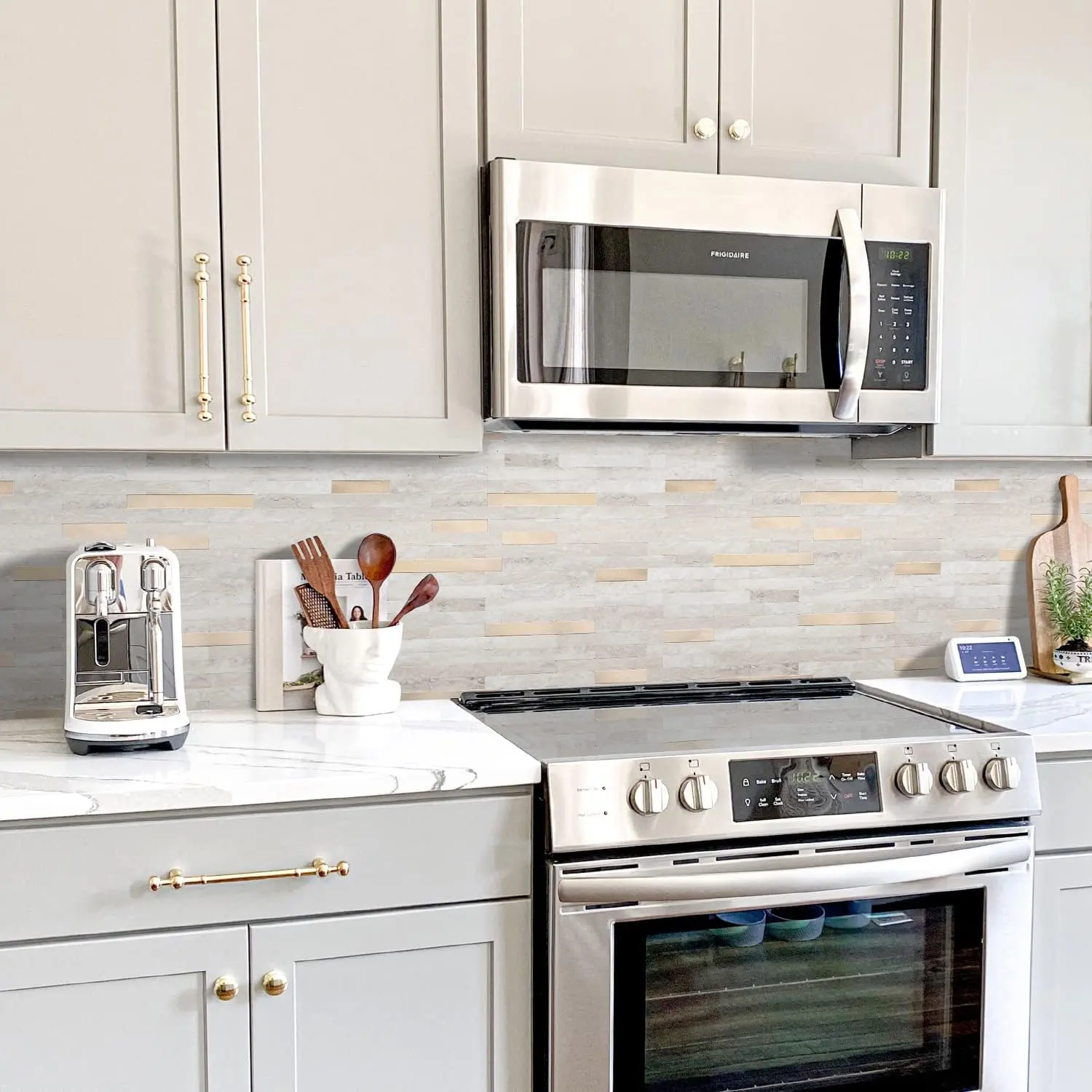 ·Premium Kitchen Backsplash: Made of PVC composite laminate, color fadeless, anti-scratch, easy to maintain, more stronger and durable than other ordinary vinyl backsplash tile.