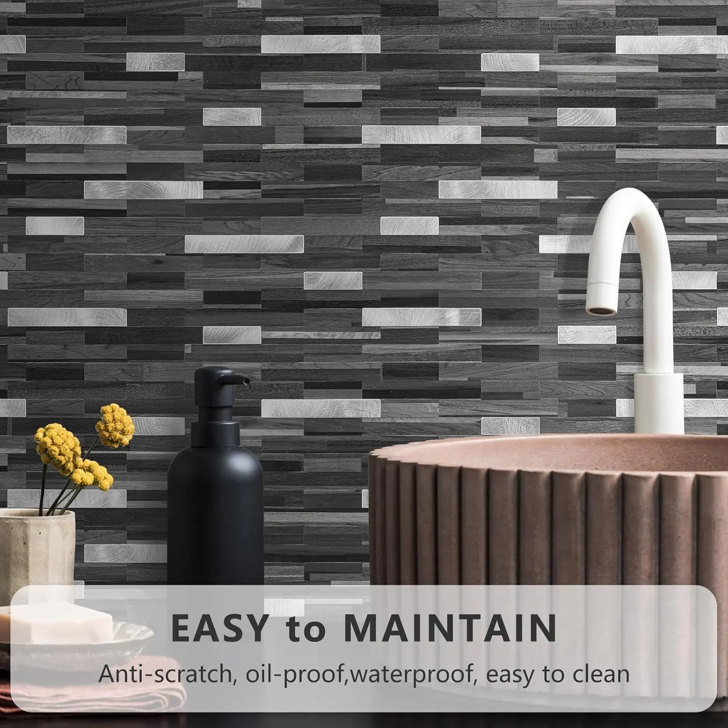 ·Super Strong Adhesive: Stronger backing glue than ordinary vinyl backsplash tile, not only stick firmly to the smooth & clean surface, but also available on lightly textured wall.