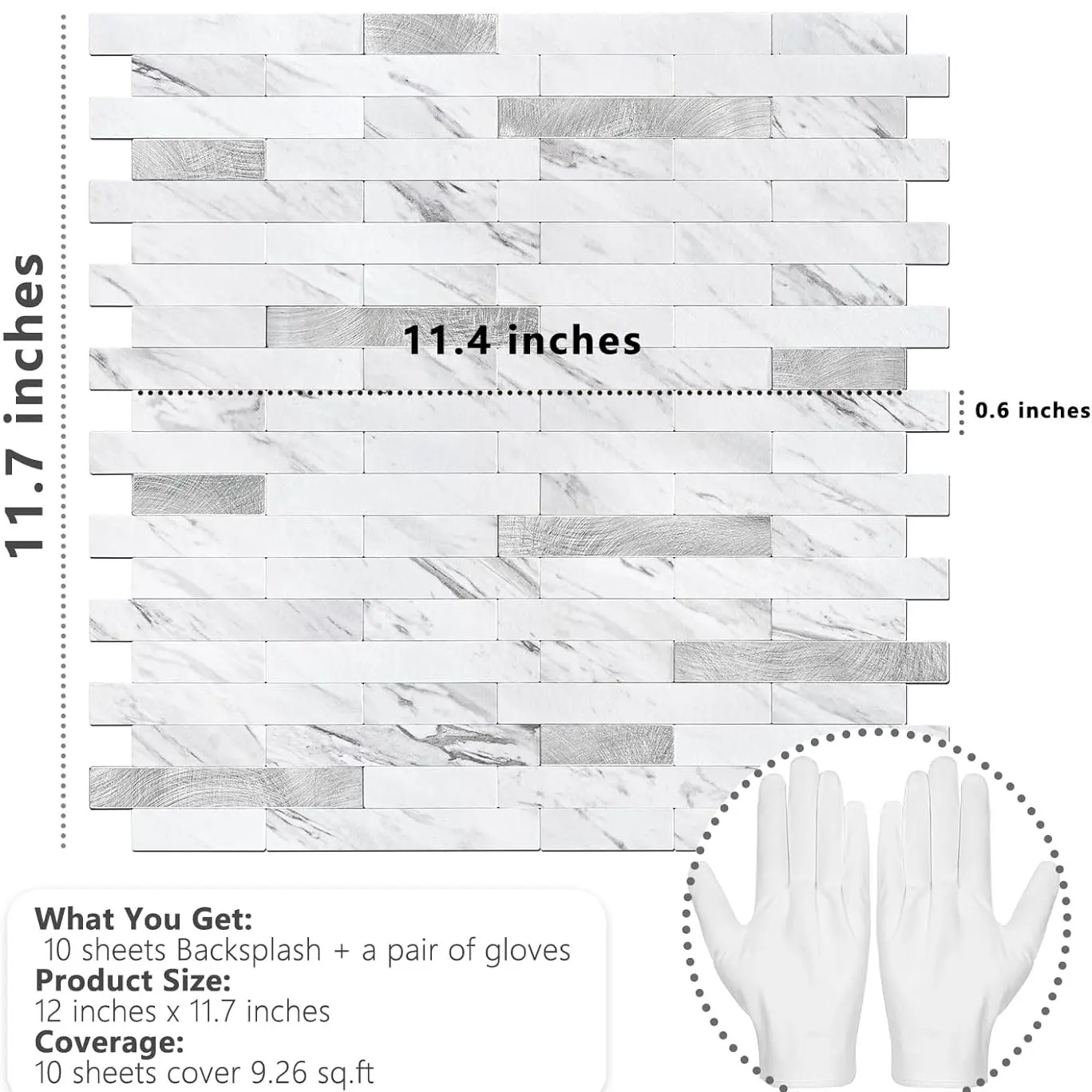 ·What You Will Get: 10 sheets PVC mixed metal tiles(12 inch x 11.7 inch), a pair of gloves, 100% satisfaction guarantee, 2 years warranty and 24 hours after-sales service.