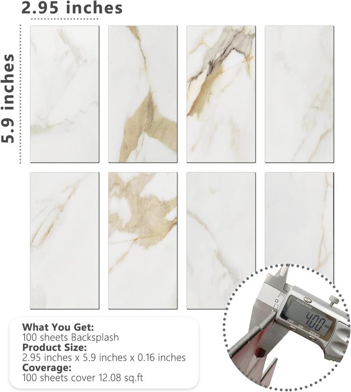 ·SIZE AND COVERAGE: 100 pieces self adhesive polyvinyl chloride tiles, 5.9"x2.95"x0.12" each, cover about 12.08 square feet. Please consider cutting loss 3-5% in every DIY project.