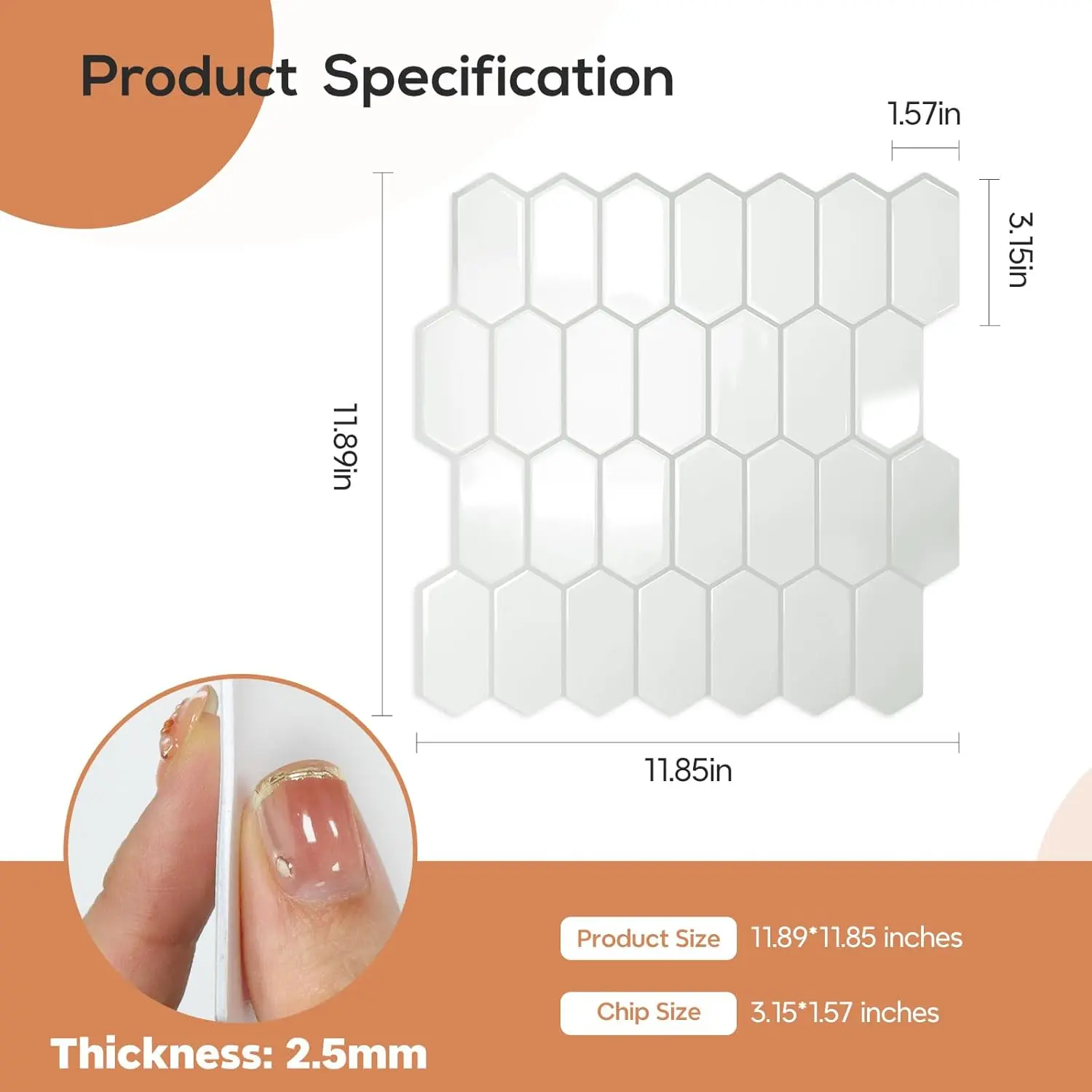 𝗟𝗼𝗻𝗴 𝗛𝗲𝘅𝗮𝗴𝗼𝗻 𝗧𝗶𝗹𝗲: 10 sheets Hex backsplash tile peel and stick , 11.89"x11.85" each, 1 sheet= 0.88 sq. ft., cover about 8.8 square feet. 3-5% extra wastage is recommended in every DIY project.