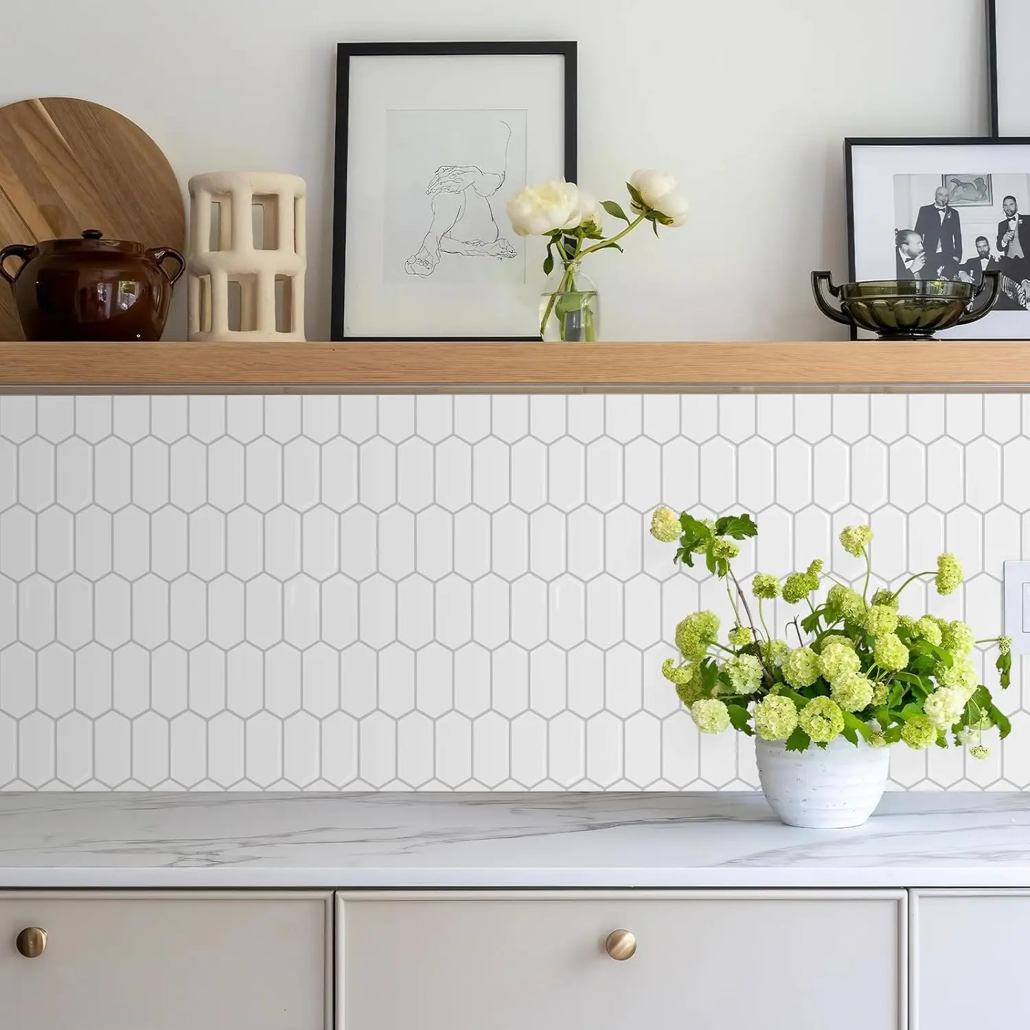 𝗦𝘁𝗿𝗼𝗻𝗴𝗲𝗿 𝗔𝗱𝗵𝗲𝘀𝗶𝘃𝗲: Our peel and stick tiles improved backing glue, which can firmly stick to smooth and clean surface.Long Hexagon design, which can be installed in Vertical or Horizontal styles.