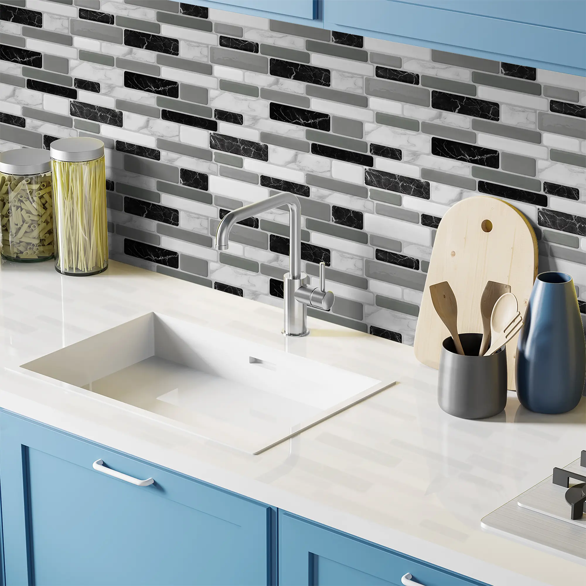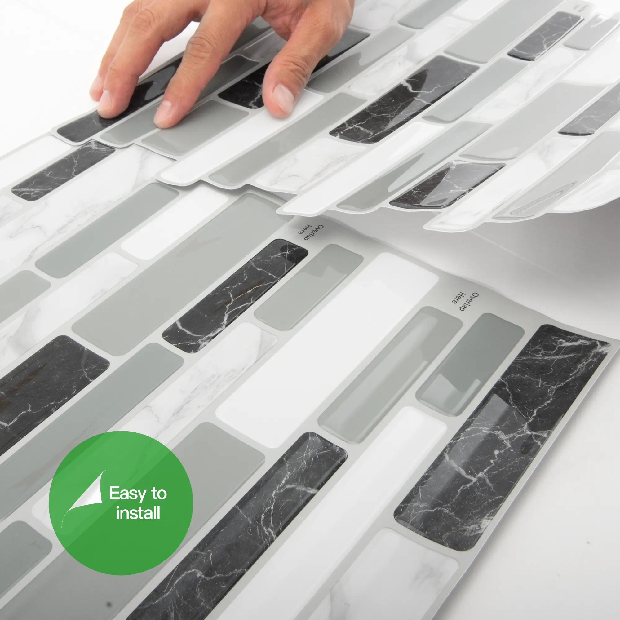 Create a stunning backsplash with these easy-to-install marble grey tile stickers that will give your kitchen or bathroom an elegant look that will last years!