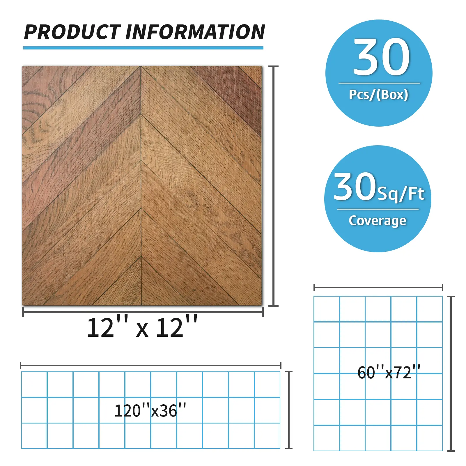 ·Package: Our pack includes 30 easy-to-install peel and stick floor tiles, each measuring 12x12 inches, seamlessly covering a total area of 30 square feet – perfect for complete room renovations or quick updates.