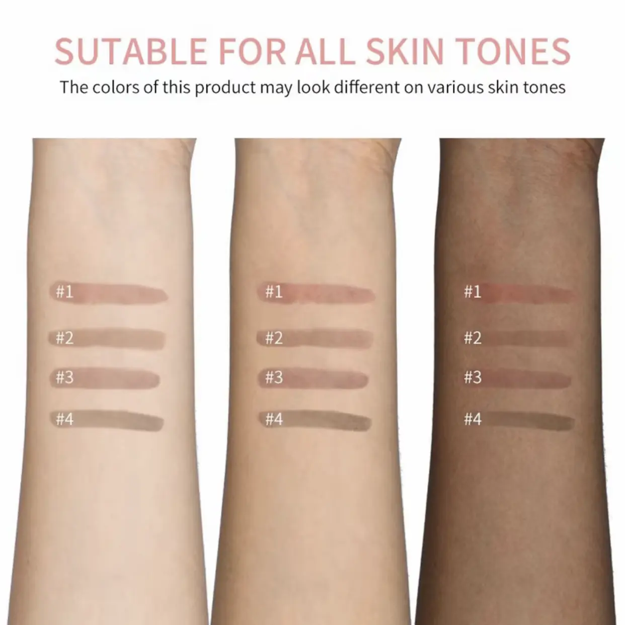 ·Four Classic Shades: Available in four classic shades tomeet different skin tones and makeup needs.#1 RosePink: Soft and sweet, perfect for everyday looks.#2Neutral Mauve: Natural and nude, suitable for all skintones.#3 Brown: Deep and mysterious, ideal for vintagelooks.#4 Cool Cocoa: Cool tone, perfect for creating aunique style.