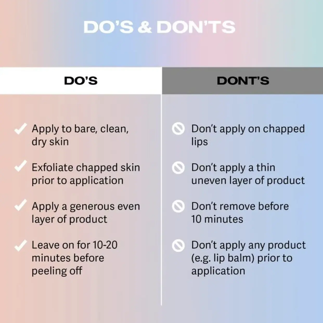 Ensure your lips are clean and free of oils before use.Close the cap tightly after use to prevent the productfrom drying out.