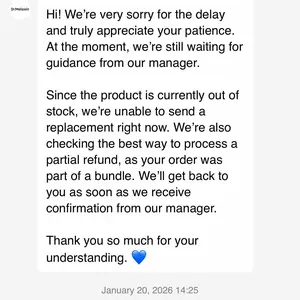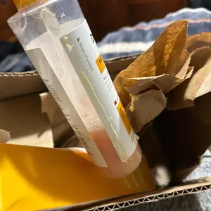 When I received the package, I noticed the brown box was slightly damp. Inside, one item's box was soaked and falling apart, and the bottle wasn't sealed properly—it's unsecured and leaking. Please send a replacement or let me return this for a refund.