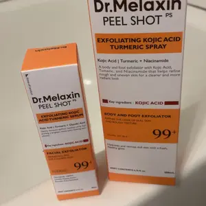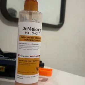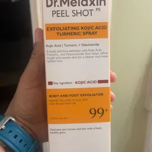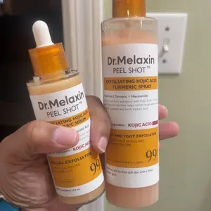 The Exfoliating Kojic Acid Turmeric Serum is really nice and seems to work as advertised. I have not tried the Exfoliating Kojic Acid Turmeric Spray because the product appears to have leaked out of the bottle. The manufacturer box has the leaked material in it. The shipping package is clean.