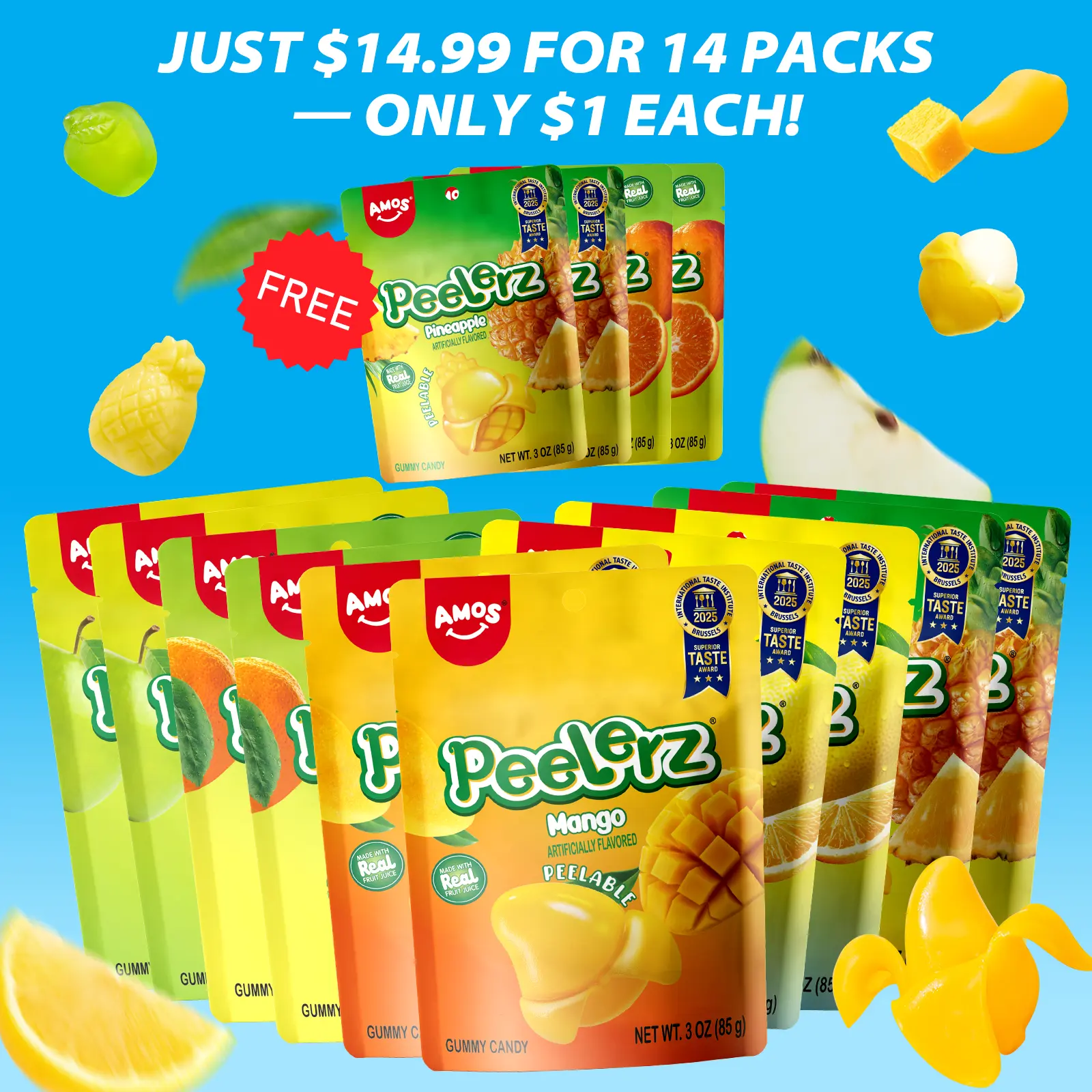 Sweet, playful, and packed with flavor — AMOS Peelerz makes every bite fun. Grab this 14-pack bundle for just $14.99 before it’s gone!