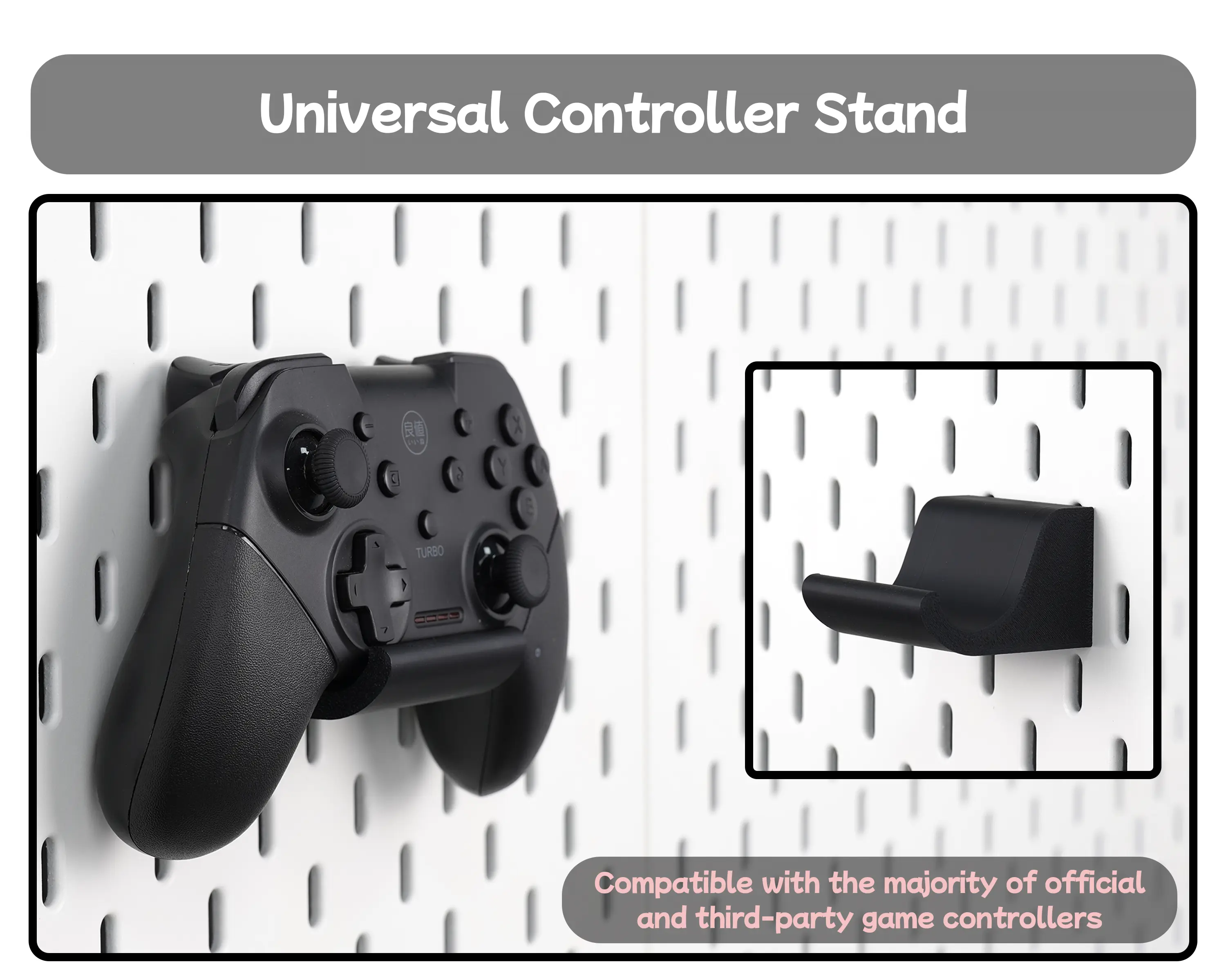 Mounts directly on IKEA SKADIS pegboards to free up desk space. This setup keeps your gaming area tidy. The holder is perfect for organizing multiple controllers while keeping them within reach.