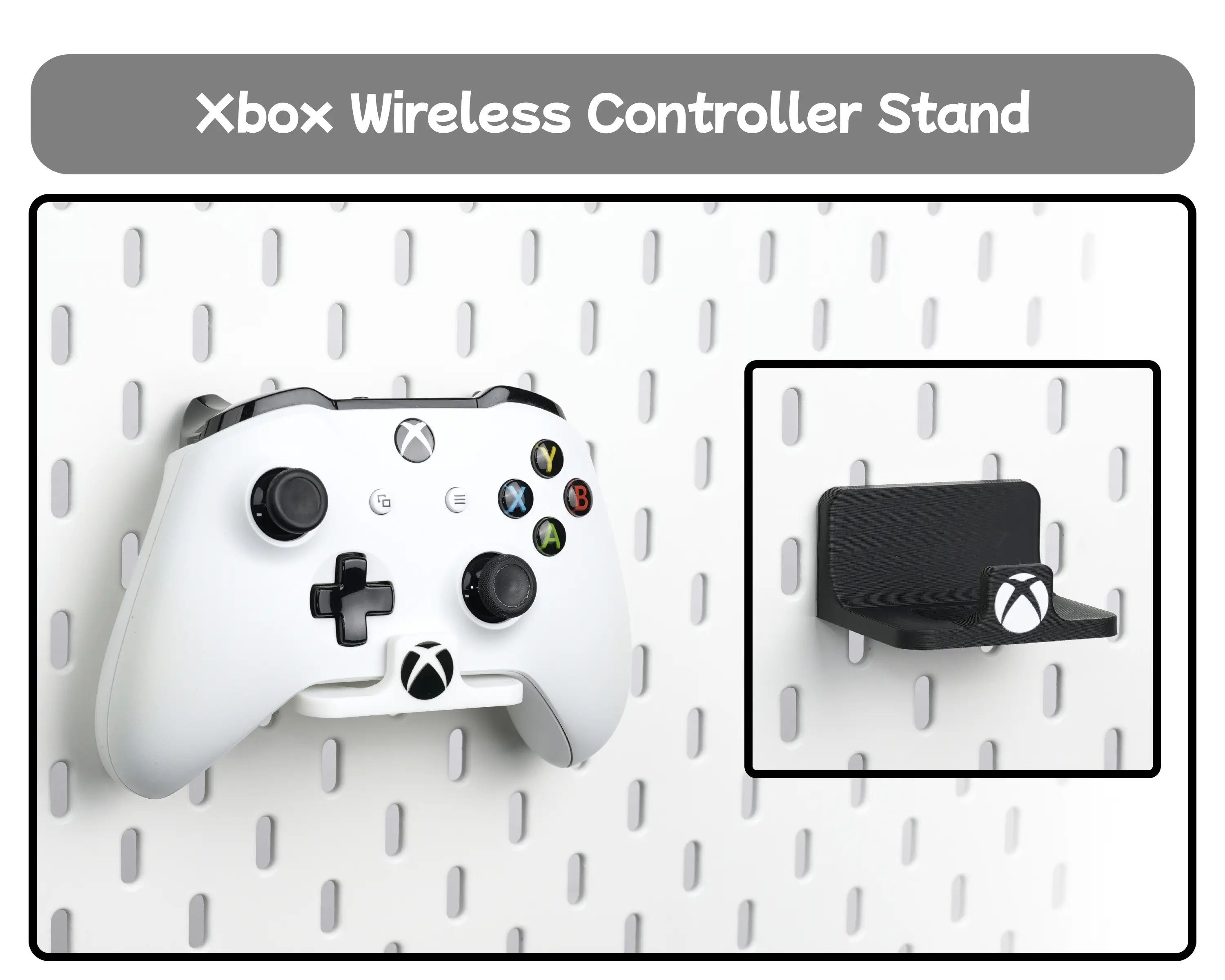 This pegboard controller holder is designed to store and display gaming controllers neatly. Compatible with IKEA SKADIS pegboards, it keeps your controllers organized and easily accessible. It improves your gaming desk setup by providing a stable place to hang and store controllers when not in use.