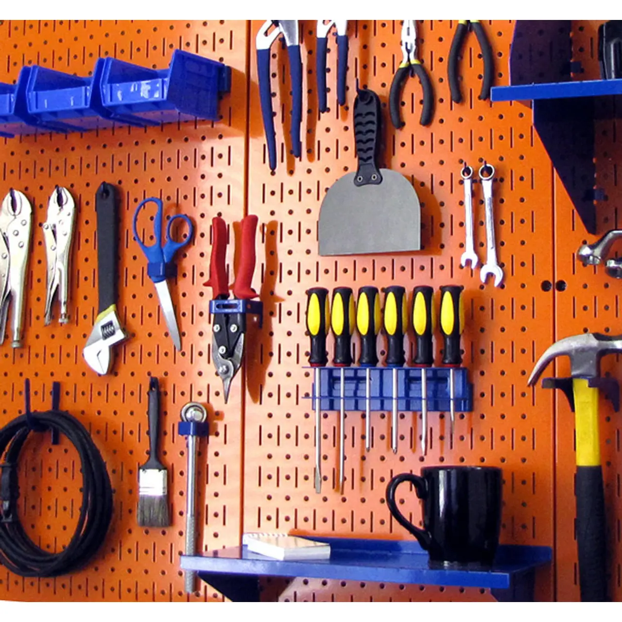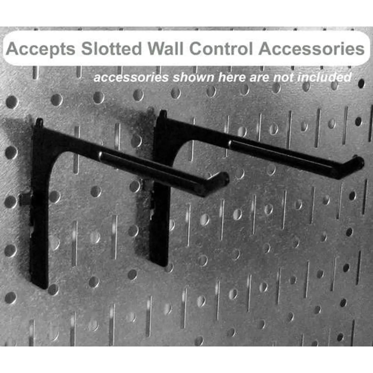 These versatile metal pegboard panels feature both slots and holes, accommodating Wall Control's slotted tool board accessories as well as conventional 1/4in peg board hooks. This dual functionality offers users a wide range of options for organizing tools, brackets, shelves, and more. These metal pegboard panels are also magnetic, so your magnets will adhere to them as well as magnetic tool organizers.