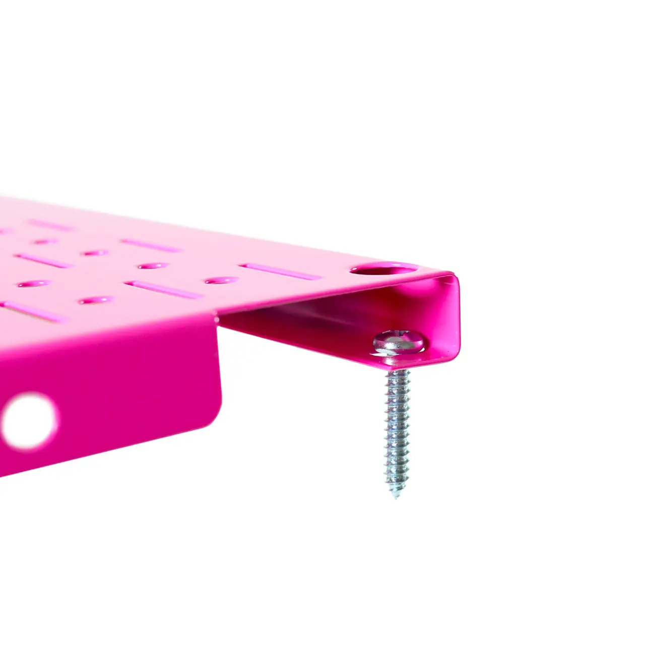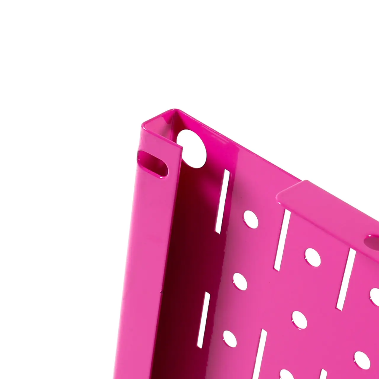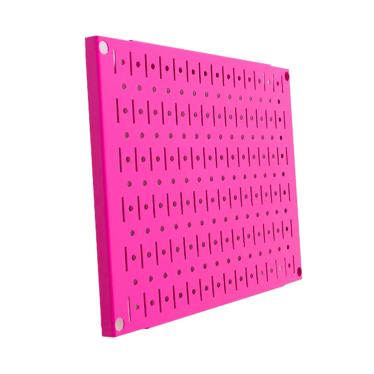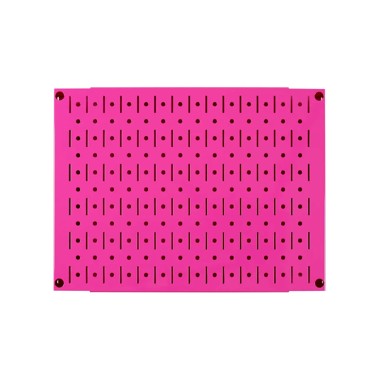 The Pink Metal Pegboard features a long lasting, scratch resistant, and attractive baked-on powder-coat finish.