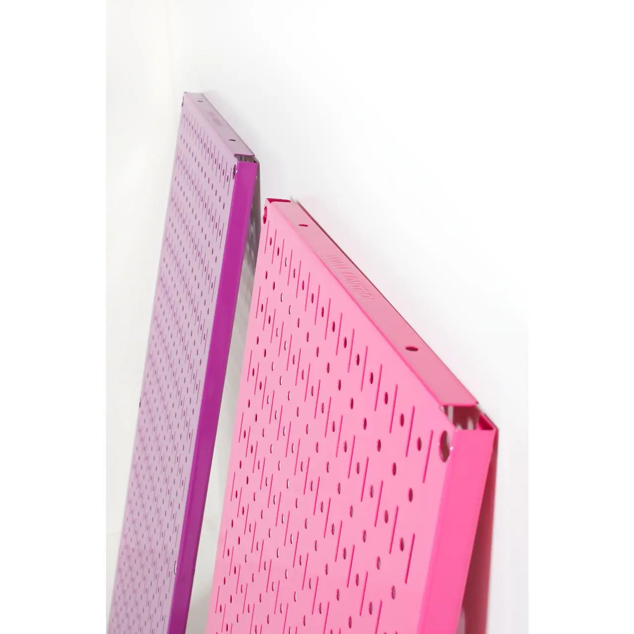 These attractive, and scratch resistant, pink powder-coated pegboard panels works great in the garage, shop, kitchen, office, closet, or craft room. Thanks to the Wall Control pegboard modular design, you can expand your storage area as time and budget allow. These pegboard panels are great individually or used in conjunction with pre-packaged value kits if you just need a few extra panels to complete an area.