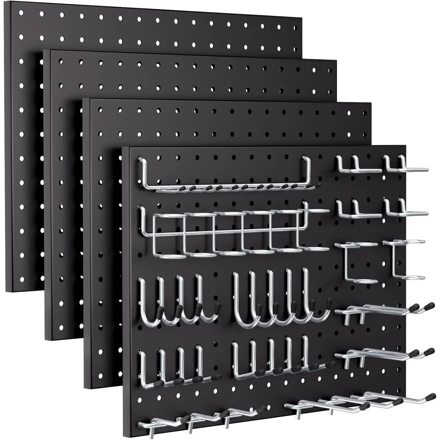 THICKER METAL PEGBOARD PANELS: With size 12"x16", the 4 count black pegboard are made of high quality metal material, also the metal construction and black galvanized finish provides maximum strength, resist rust and .Freely form 64" x 12" or 32" x 24" pegboard wall by your needs on solid wall, such as , brick, conceret wall, Not drywall