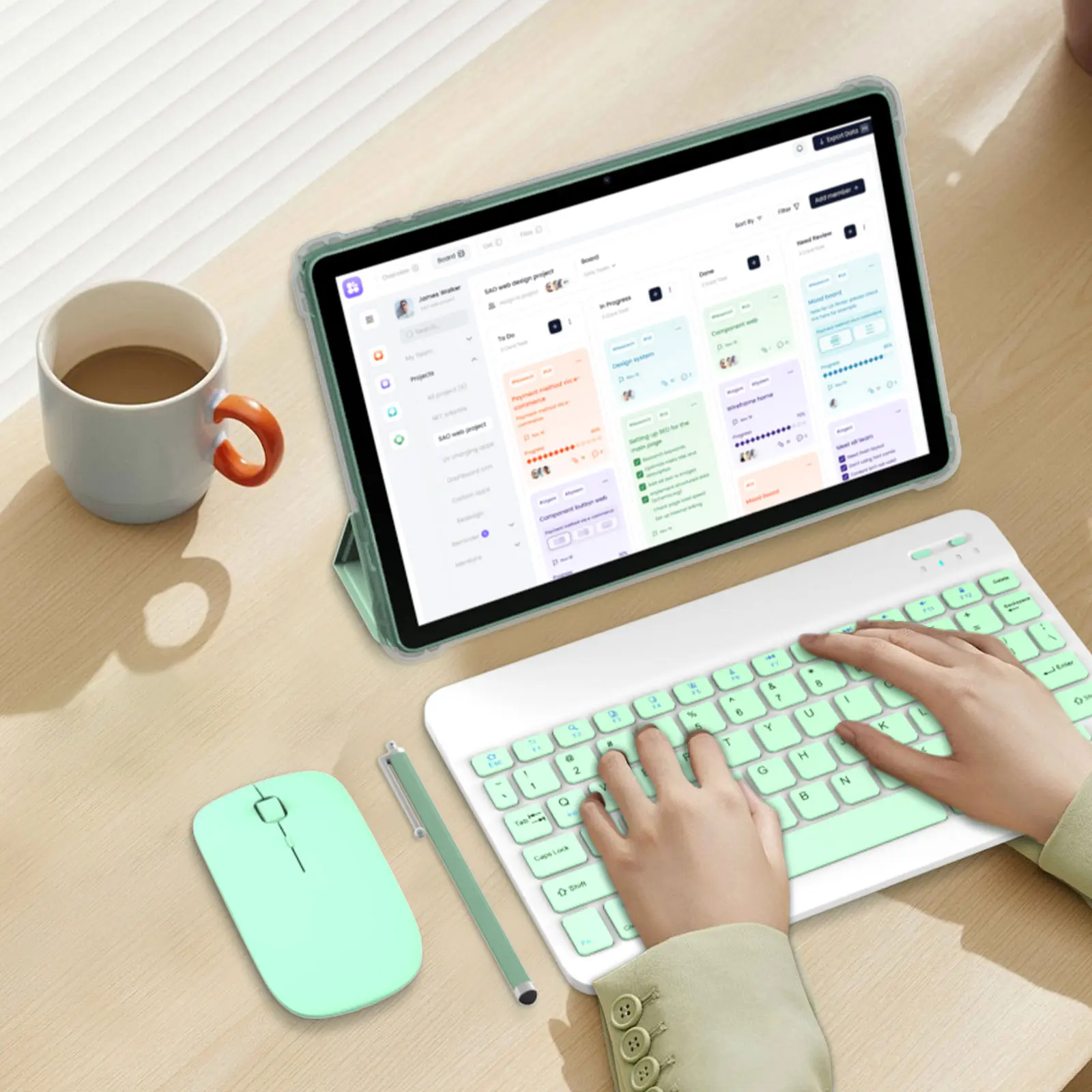 ·【Portable 2 in 1 Tablet with Keyboard】 This 11 inch android tablet equipped with a bluetooth keyboard, wireless mouse, and stylus as well as a foldable protective case, allowing you to seamlessly transform your 10'' tablet into a laptop-style device. This versatility makes it the ideal device for those who need to be productive on the go, whether it be for work, study, or play.