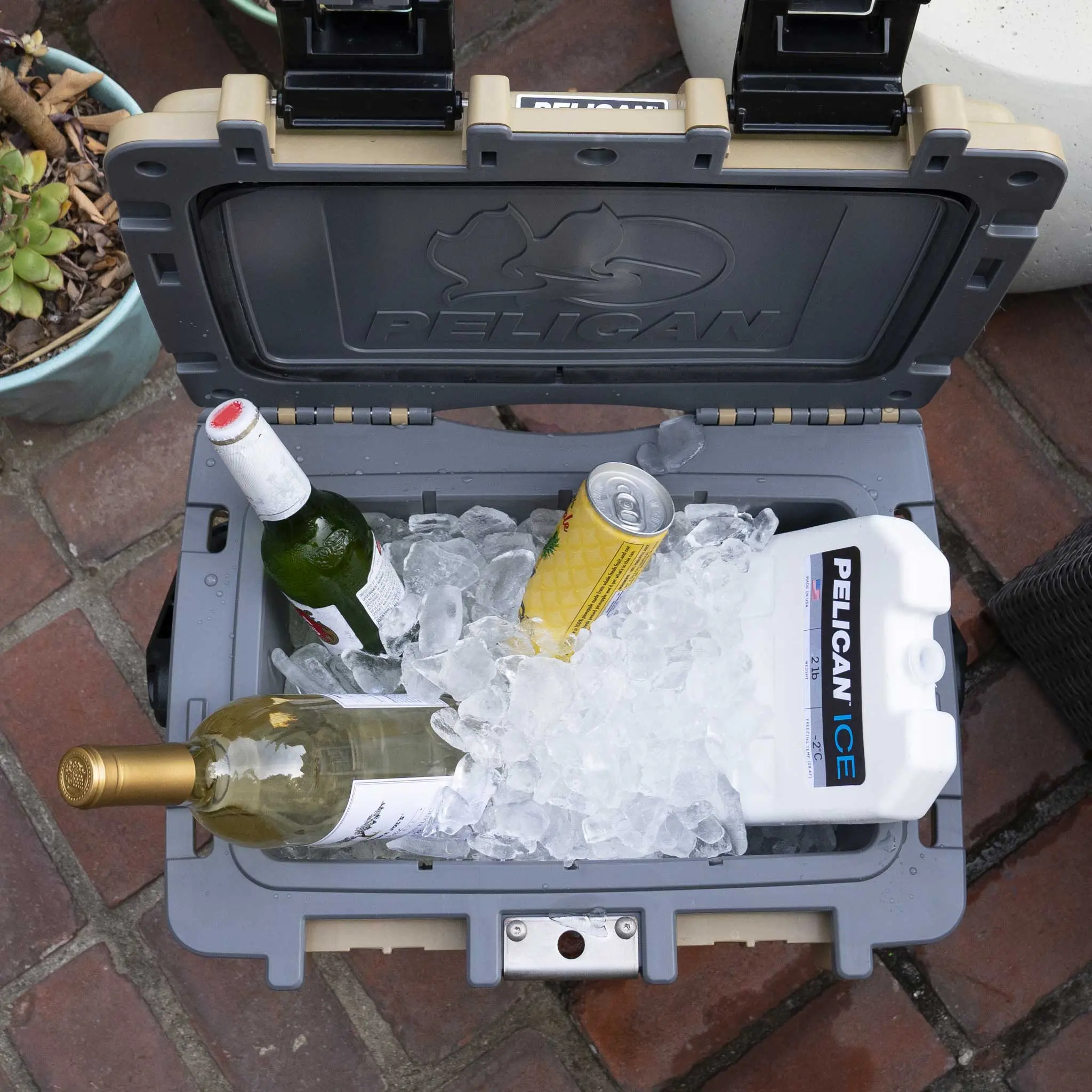 The Pelican™ 2lb Ice Pack ensures faster cooling with its flat design, maximizing surface area. Freeze it at 28.4°F (2°C) for extended coldness. Traditional ice sticks due to its incredible coldness. This middle-sized ice pack fits Pelican Coolers from 14QT to 250QT. Keep your food and drinks colder with this optimized solution!