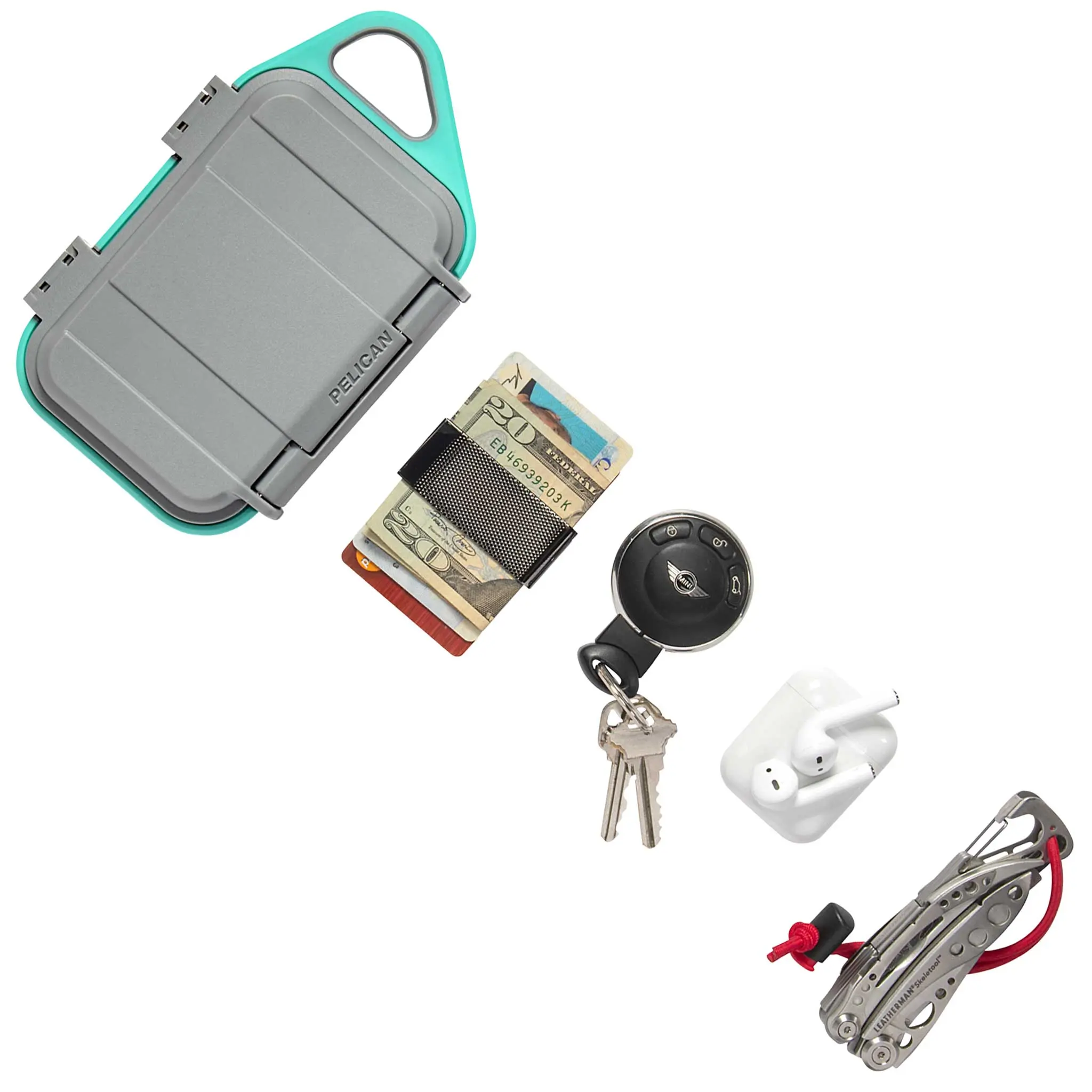 Weatherproof and watertight: shield your exploration essentials from dirt, water, and sun exposure with Pelican’s most mobile, protective case yet. The Pelican G10 GO™ Case is designed to keep up with your pace, and safely secure your must-haves in place. Easy Carry Handle That Can Securely Attach to Backpacks, Kayaks, Boards, and More Easy to Open Integrated Single Hinge Latch IP67 Rated Protection From Water, Dirt, Snow & Dust This compact, water-resistant case offers a simpler, easier way to consolidate your keys, cards, cords, earphones, and other small essentials into a single grab-and-go system. FEATURES ● IP67 rated protection against damage and grime● Integrated single-hinge latch and convenient carry handle● Sturdy ABS outer shell and protective rubber bumper protects against drops● Waterproof to a depth of 1 meter for 30 minutes● Built in pressure valve balances internal air pressure and repels water and dust● Lifetime guarantee SPECS INTERIOR (L X W X D) 4.80" x 2.80" x 1.60"EXTERIOR (L X W X D) 7.05" x 4.37" x 1.81"WEIGHT: 0.57 lbs (0.3 kg)O-RING: Thermoplastic RubberPINS: Stainless SteelBUMPER: TPULINING: EVAMINIMUM TEMPERATURE: -10° F (-23 ° C)MAXIMUM TEMPERATURE: 199° F (93 ° C)Designed in the USAMade in China