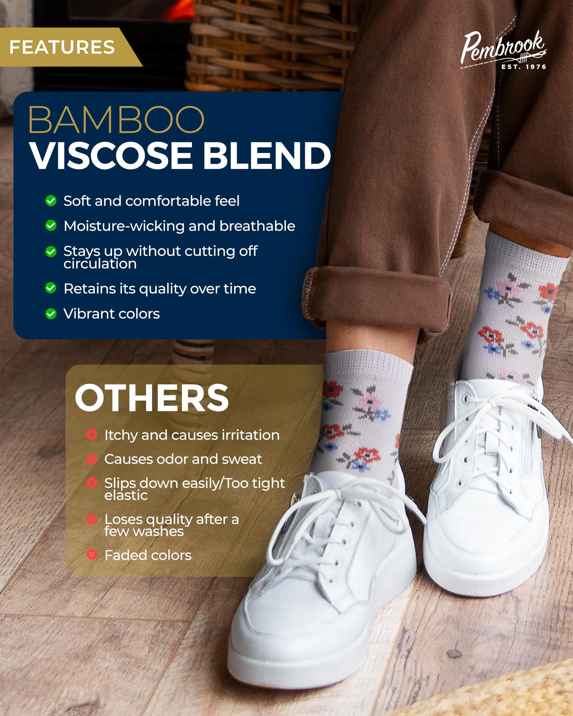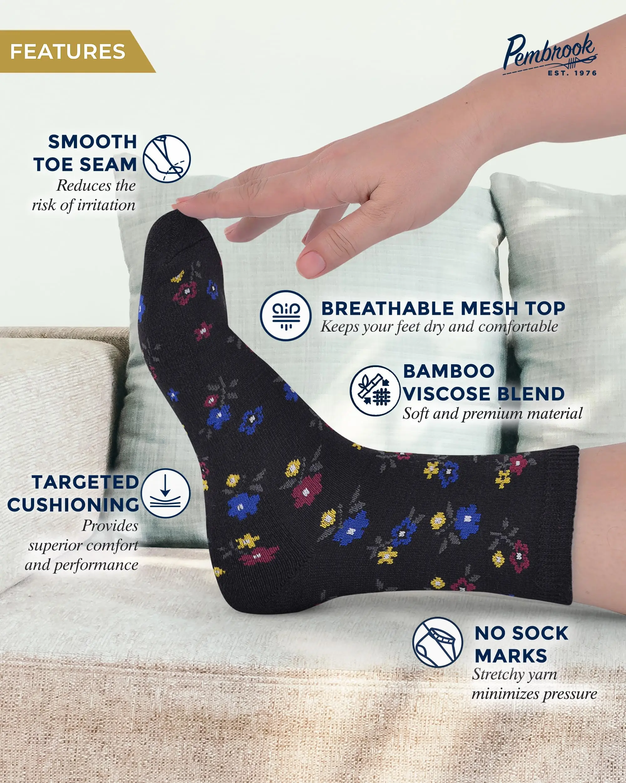 Unrestricted Foot Comfort - Upgrade your day with Pembrook viscose bamboo socks woman and men. Designed with maximum stretch tops, they promote good blood flow to help provide relief from swollen feet and ankles.