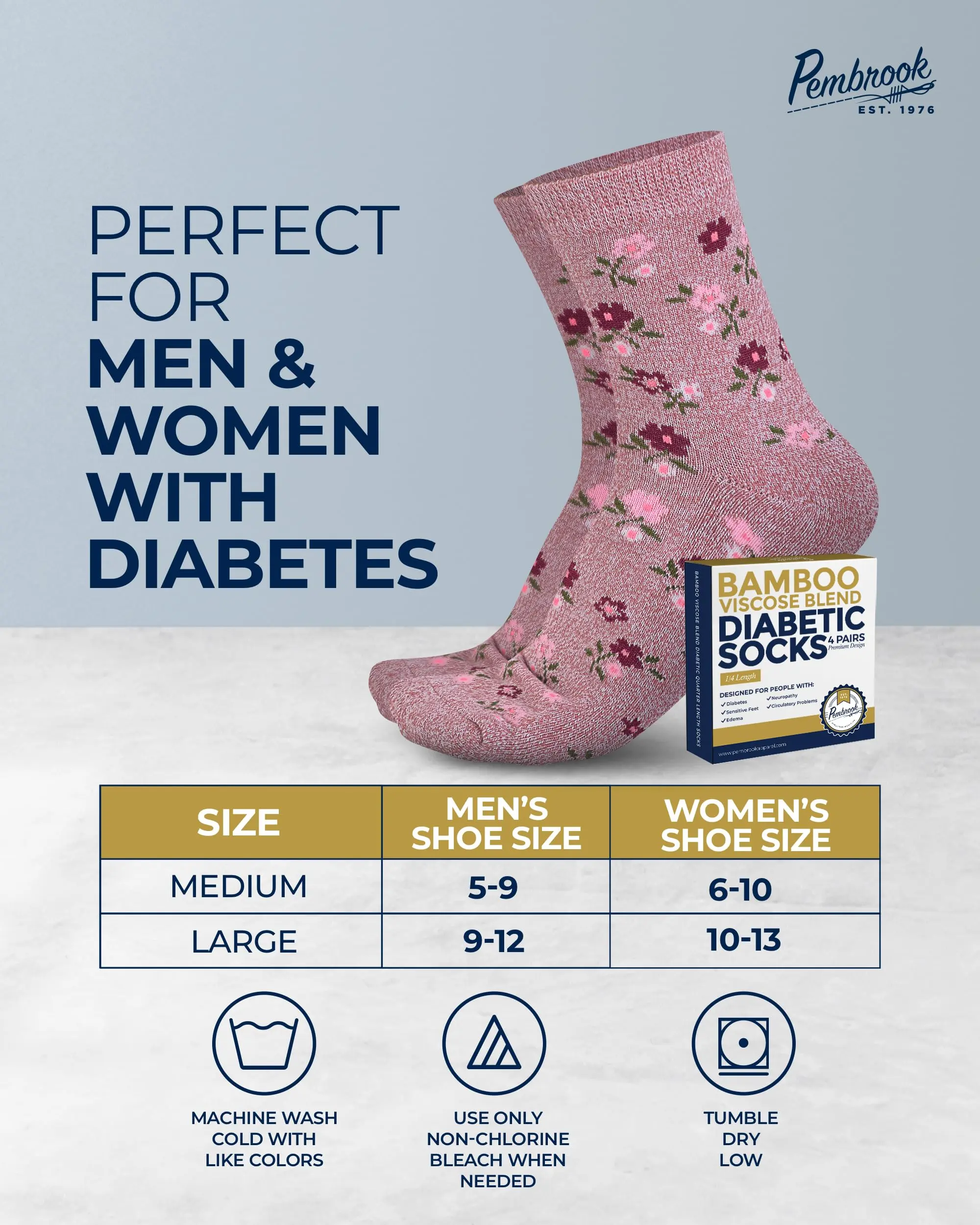 Moisture-Wicking & Irritation-Free - Our mens and womens diabetic socks are made of bamboo viscose to keep feet dry, sweat-free, and comfortable. They also have smooth toe seams to reduce the risk of irritation and pressure.