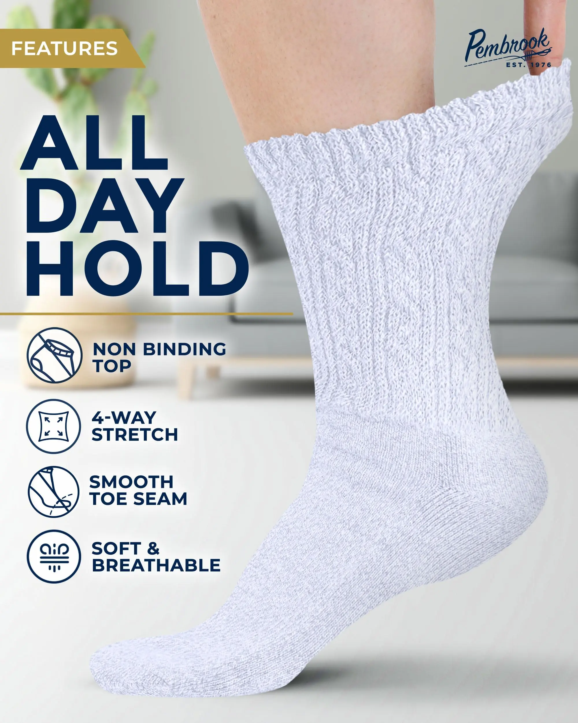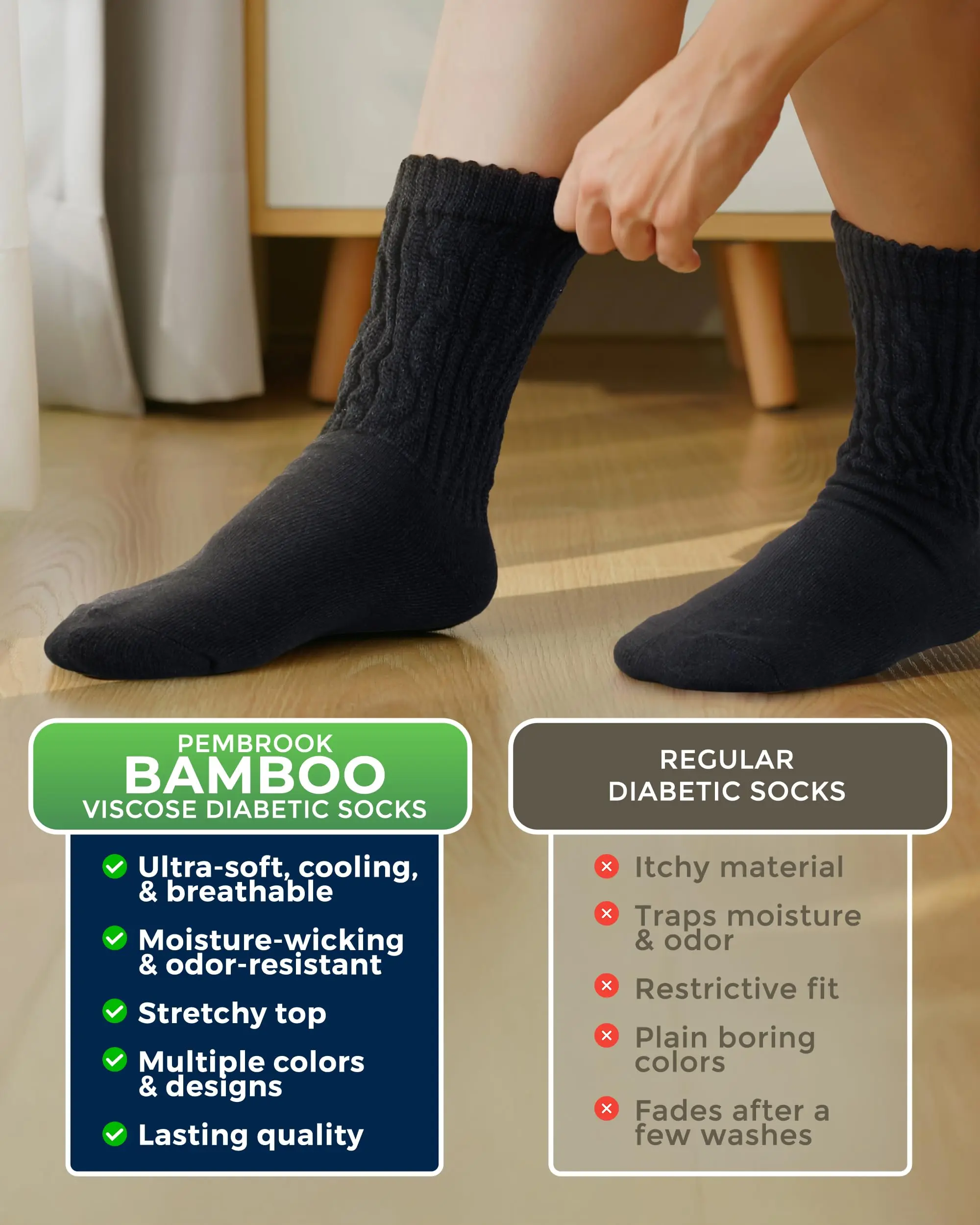Cooling Bamboo Viscose Comfort - Experience all-day comfort with Pembrook’s non binding socks women, made from breathable, moisture-wicking bamboo viscose that keeps your feet cool, dry, and luxuriously cushioned.