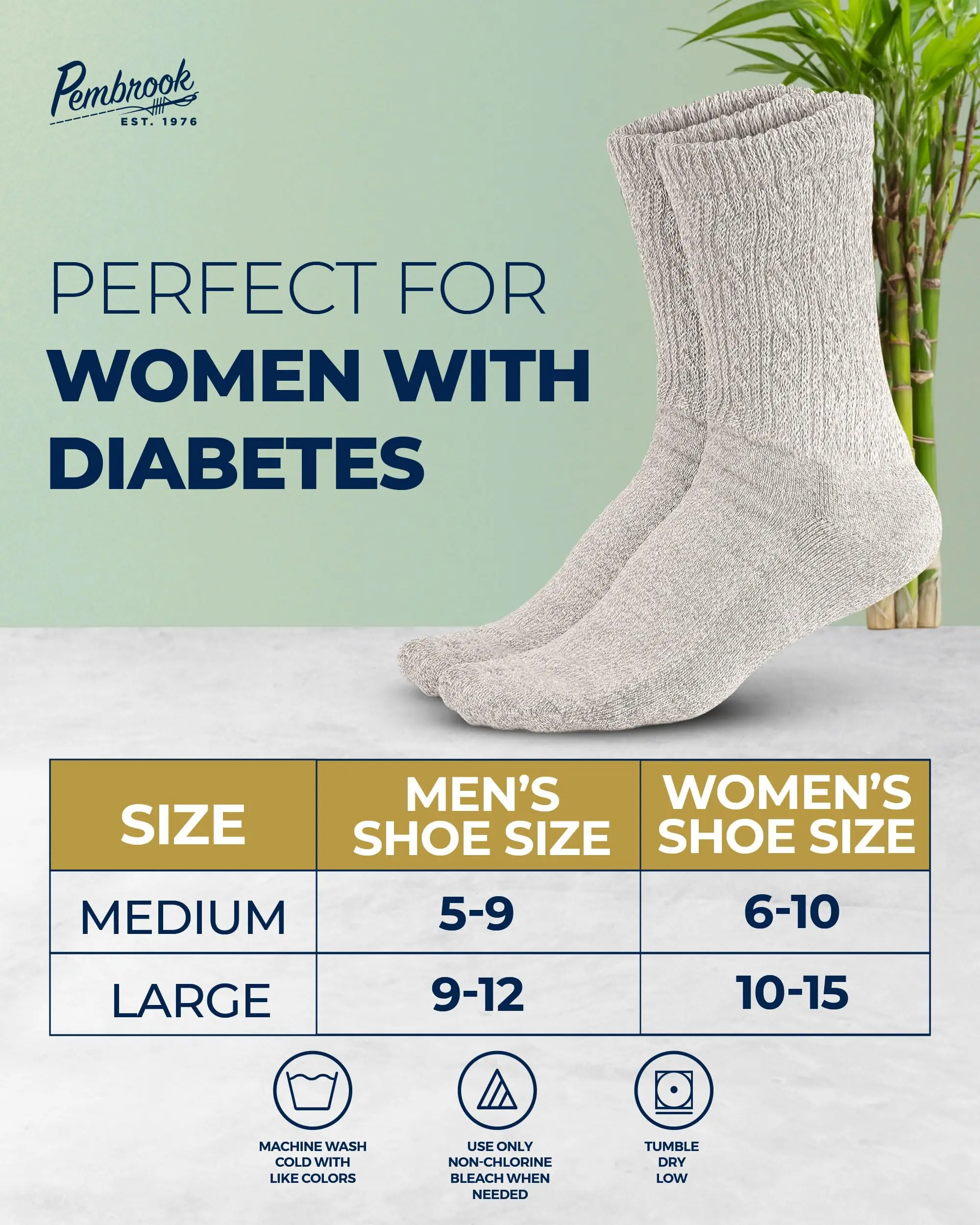 Sizing & Care - Medium womens bamboo viscose socks fit women's 6-10, while Large fits wide ankle socks for women 10-15. With machine-washable fabric, these socks are easy to clean and built to keep their comfort and durability.