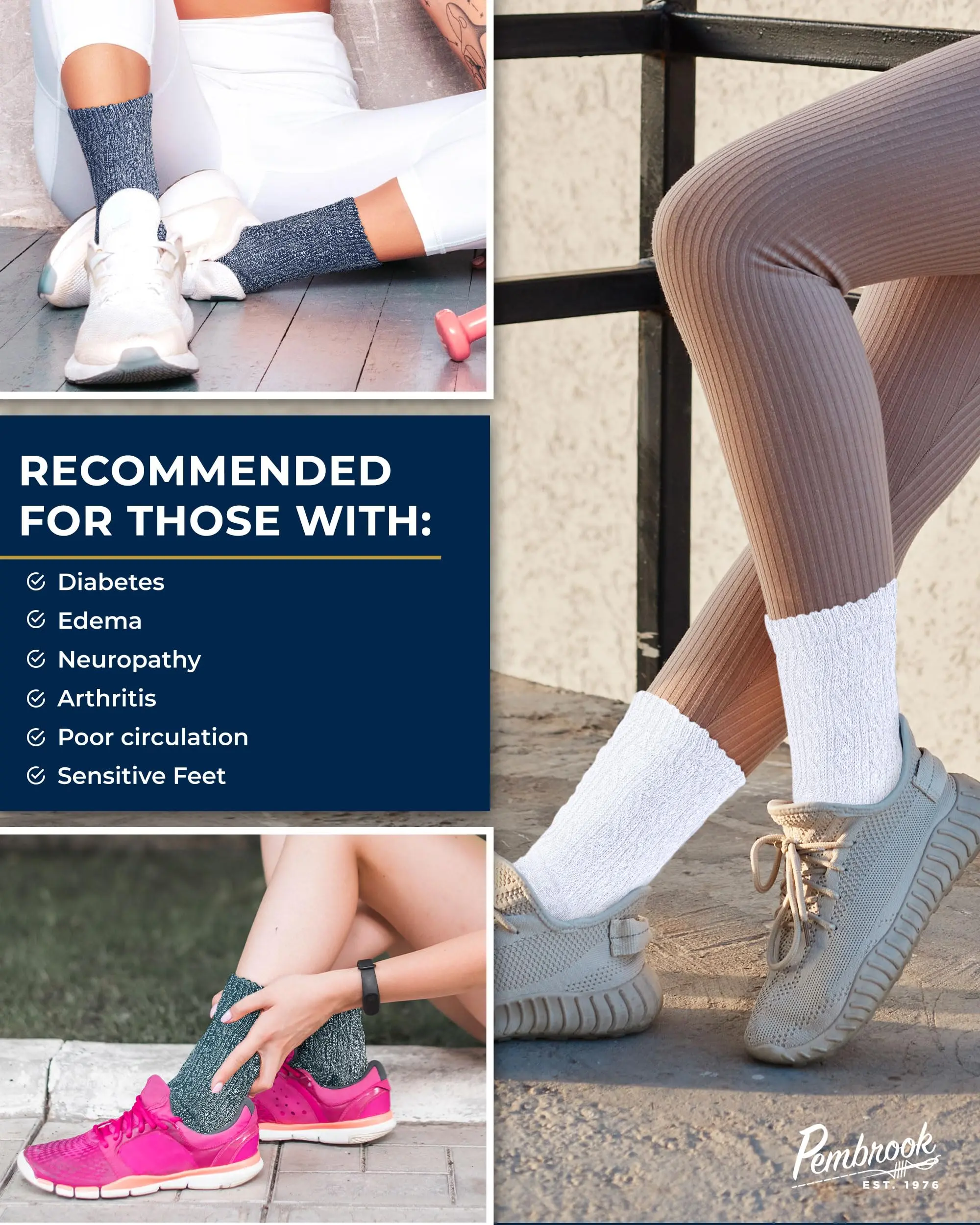 Support for Sensitive Feet - Ideal for individuals with or without diabetes, these socks with smooth toe seams provide soothing support for aches and pains associated with neuropathy, circulatory issues, and sensitive skin.