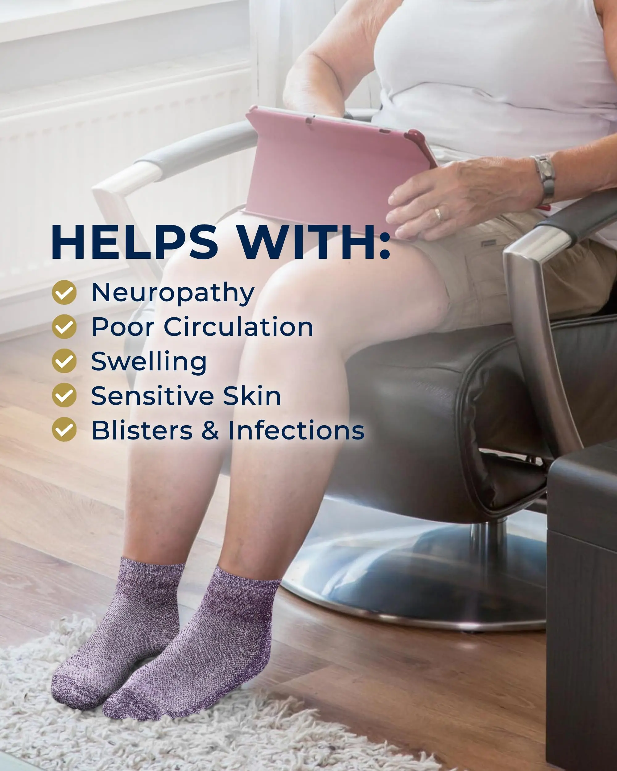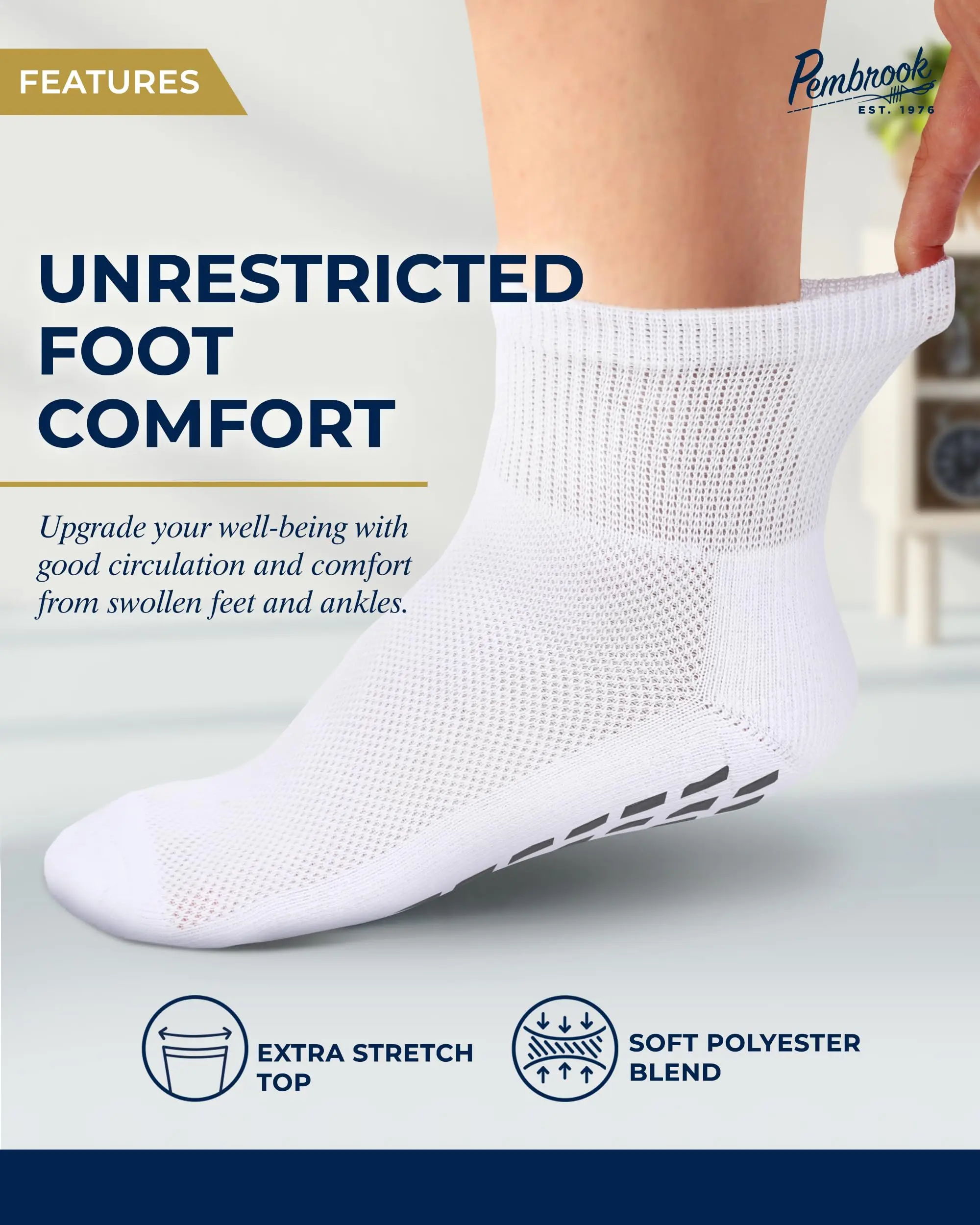 Comfort for Swollen Feet & Ankles - The Pembrook diabetic socks men and women are lightweight, non binding with a loose top around the ankles to aid poor blood circulation. These diabetic socks women and men are easy to pull on over swollen feet and feel soft and comfortable on the skin. The absolute best pair of diabetic socks for women and men who suffer from edema, diabetes or neuropathy.