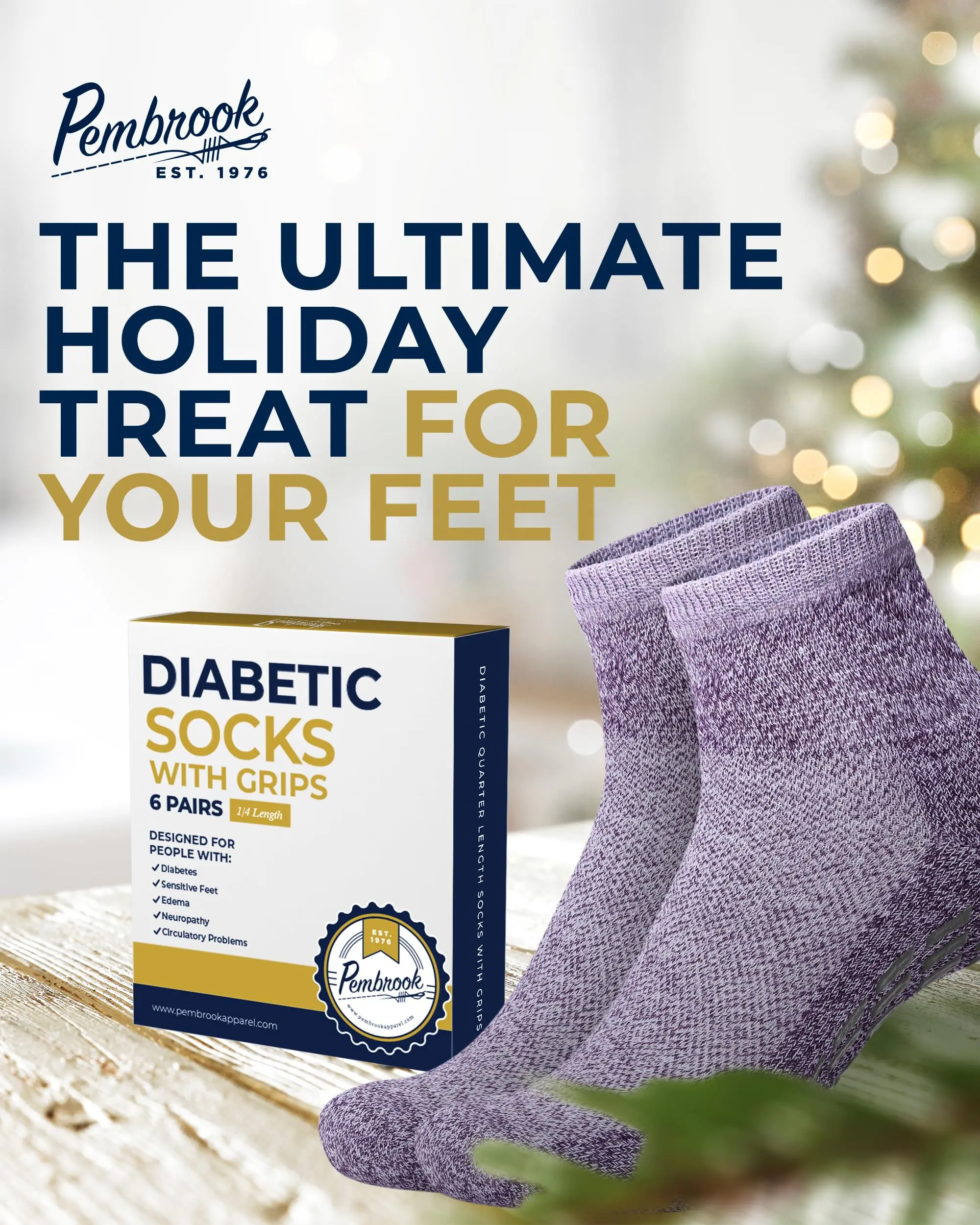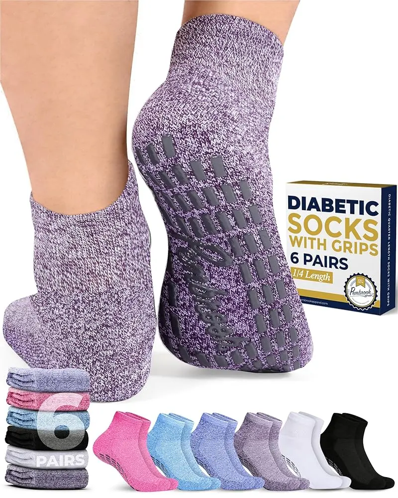 Grips that Keep You Safe & Balanced - Our diabetic non slip socks are great for walking, running and sitting still. They help prevent swelling in the feet and ankles and have a breathable mesh top to keep feet dry and comfortable. The rubberized grips provide superb grip on smooth and slippery surfaces. A great choice of edema socks and neuropathy socks as well as socks for diabetics men and women.