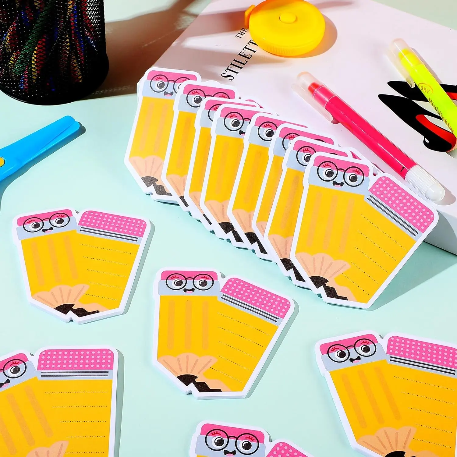 Pencil Theme: our sticky notes adopt a pencil shaped design; The cover of the sticky notes and the notes inside are designed with a pencil theme; The patterns on the sticky notes are cute and the colors are bright