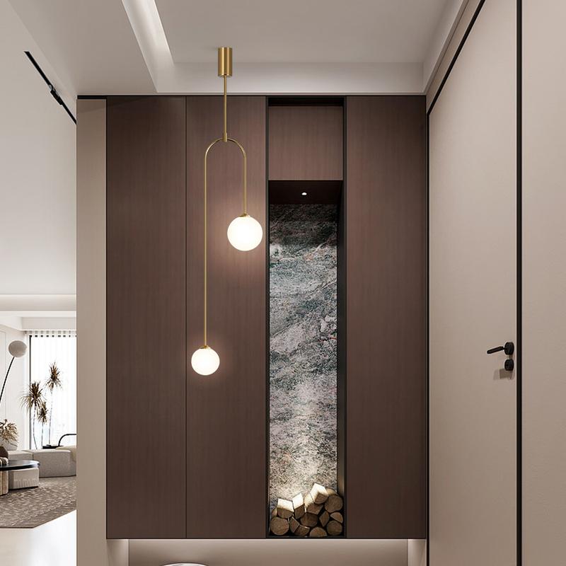 5. Modern Pendant Light Glass Globe 2-Light U-Shaped for Living Room and Bedroom