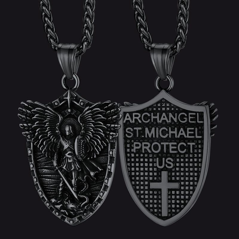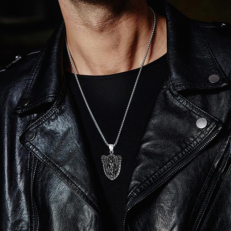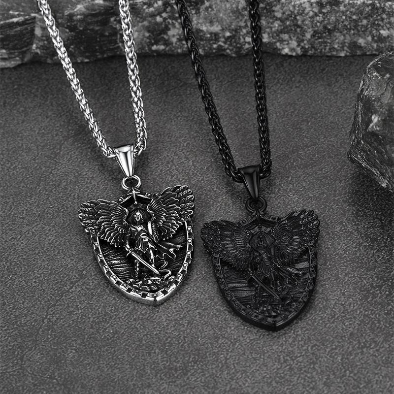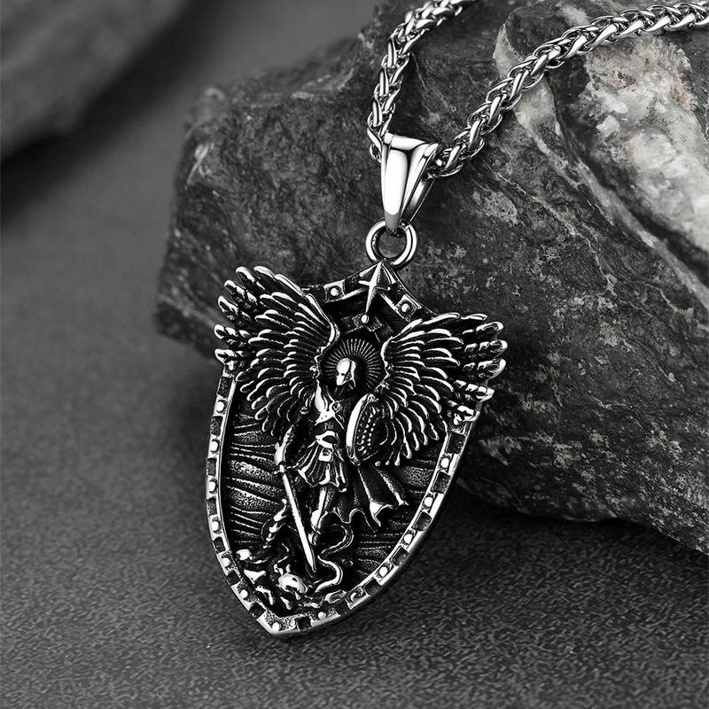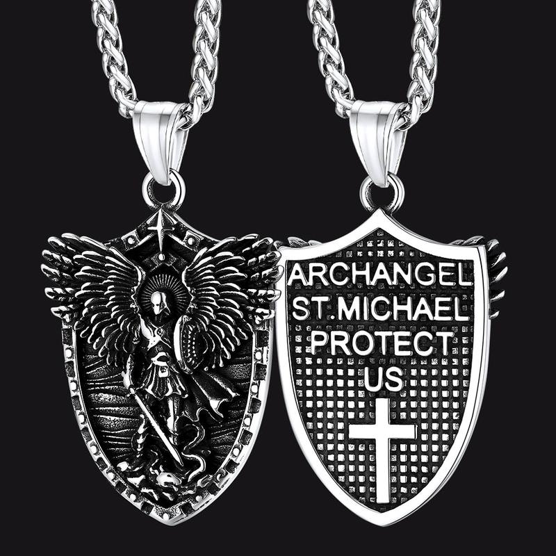 FaithHeart Shield of Archangel Michael  for Men Pendant Necklace Stainless Steel