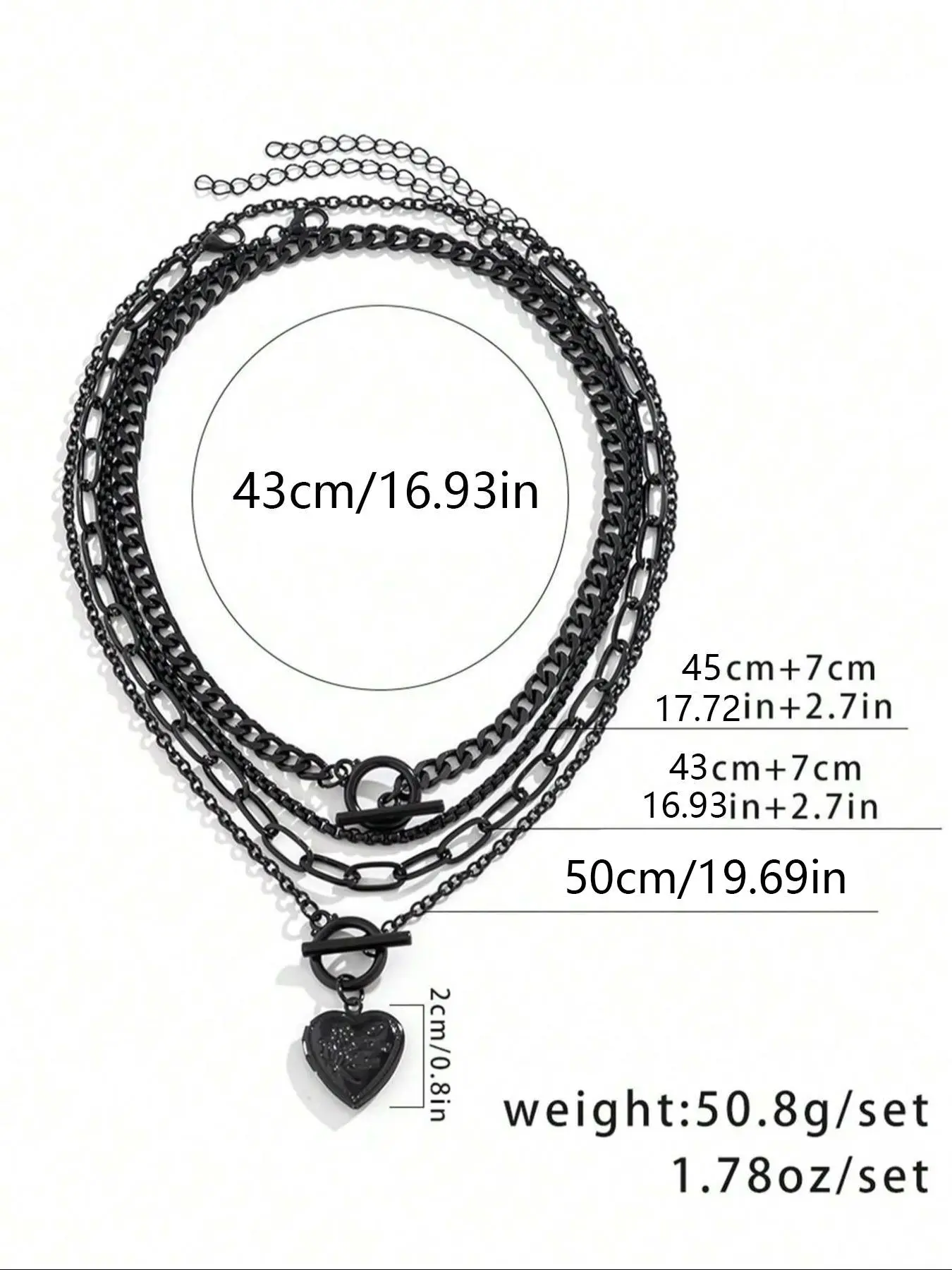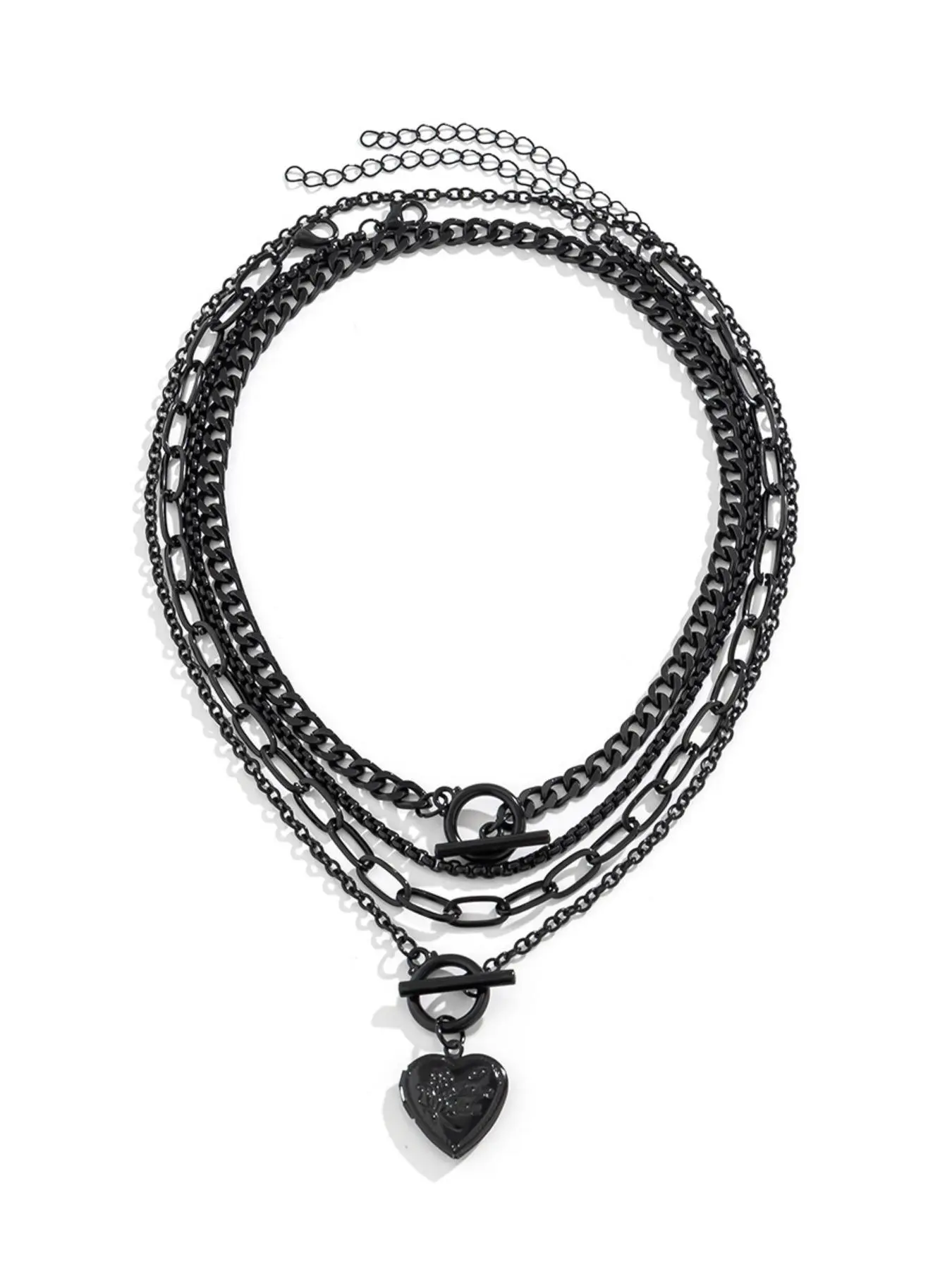 Women's Punk Style Heart Design Pendant Necklace & OT Buckle Chain Necklaces, 4 Counts Fashion Charm & Chain Necklaces, Gothic Mystery Jewelry, Trendy Goth Jewelry for Birthday Gift