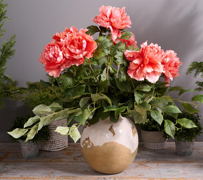Brighten the room with these cheerful, lifelike peony blooms. Fill a vase or urn with the colorful flowers interspersed with green foliage and create a lovely, cascading effect. From the Valerie Parr Hill Collection.