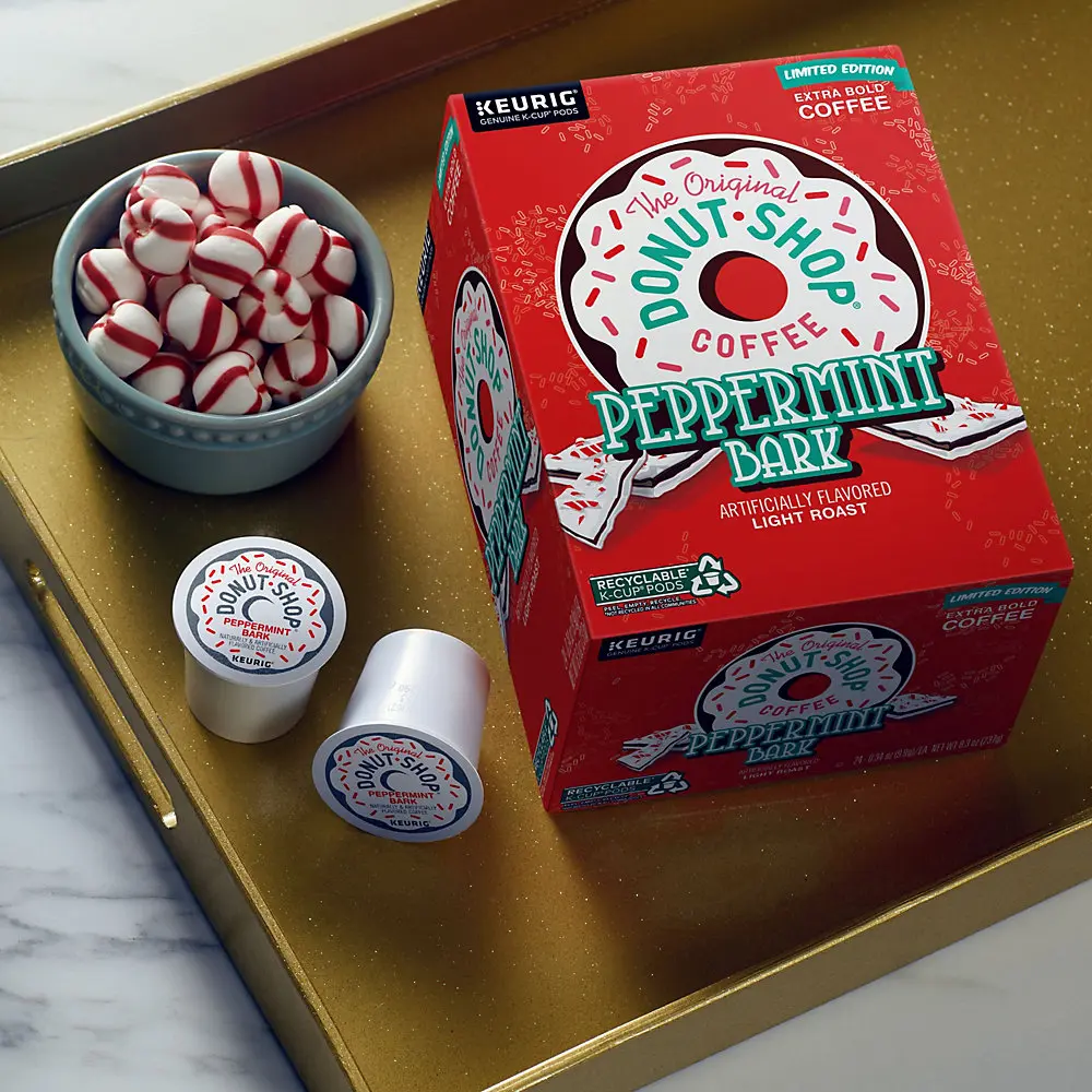 5. The Original Donut Shop Peppermint Bark Coffee - Light Roast Coffee - Keurig K-Cup Pods - Holiday Coffee Flavor- Peppermint Coffee - High Box Count