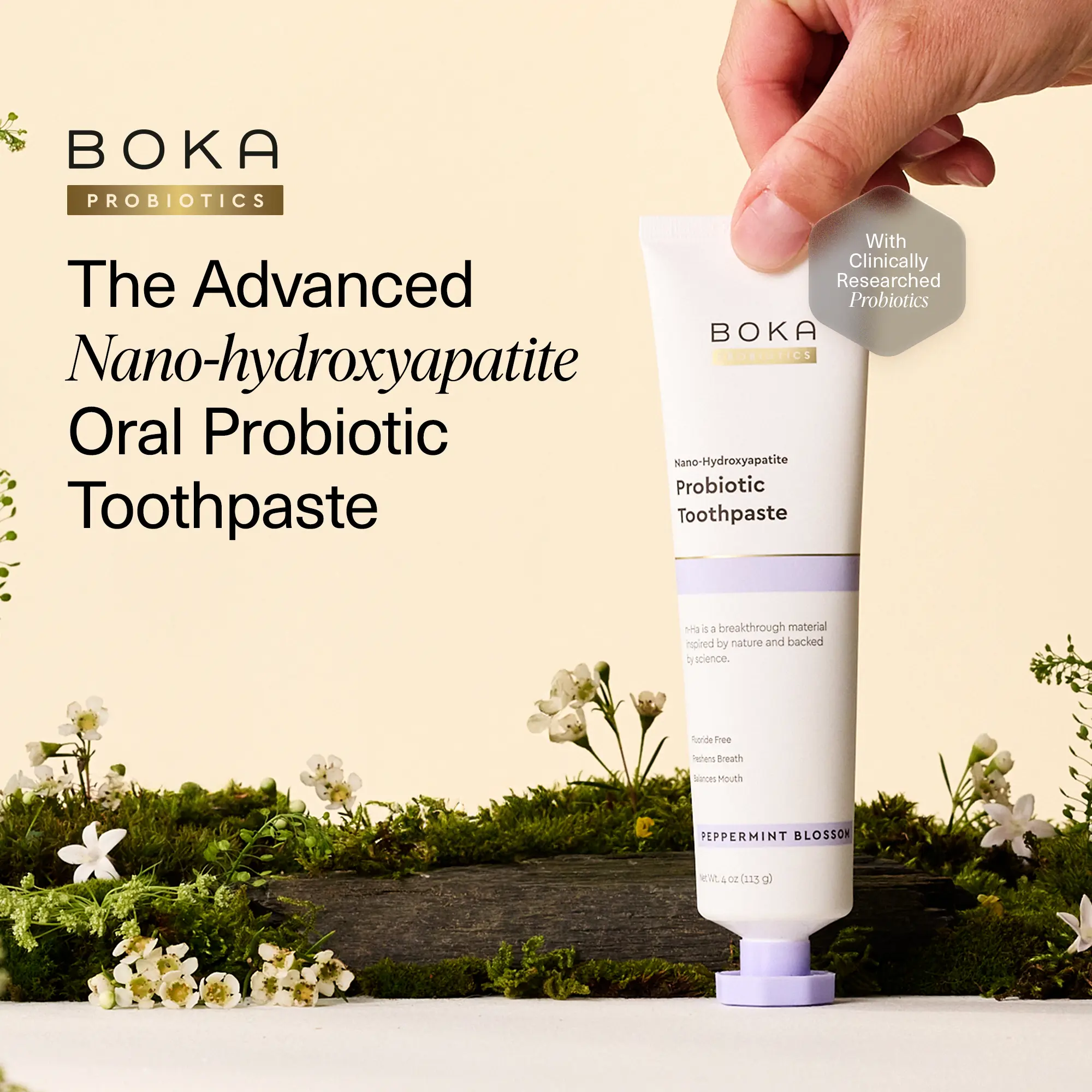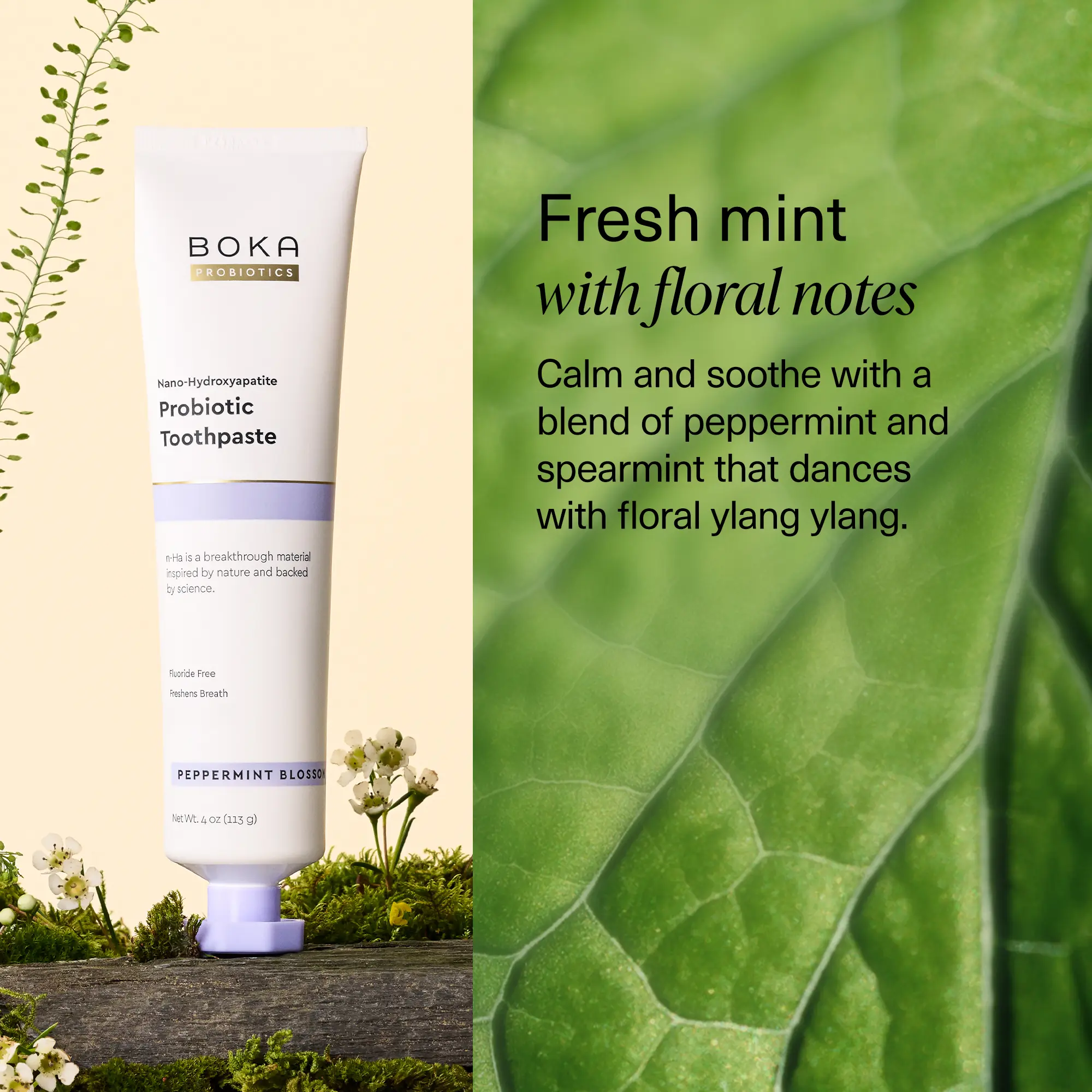 Boka Probiotic Nano Hydroxyapatite Toothpaste – Peppermint Blossom, Fluoride-Free, 4oz