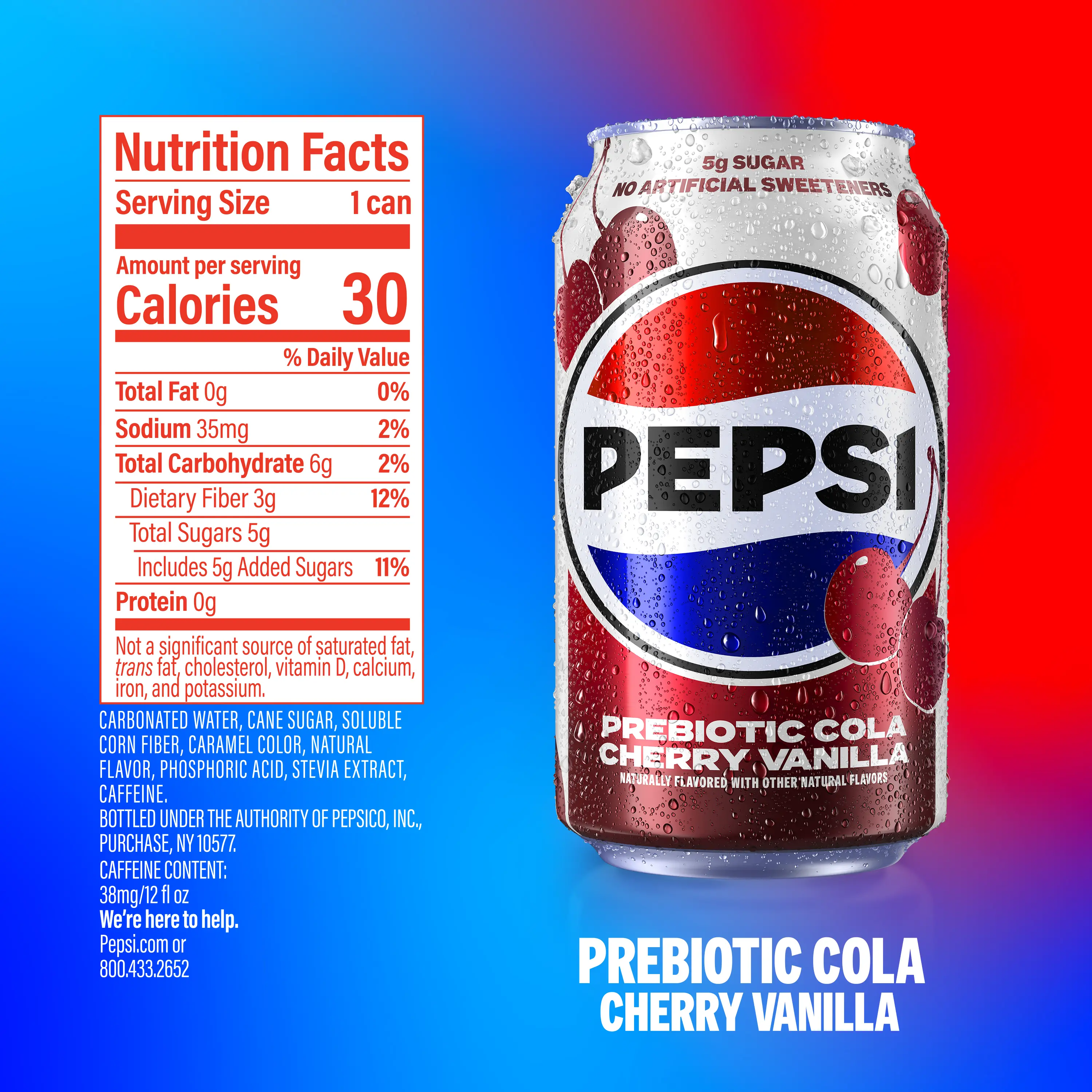 ·Includes 8 (12oz) cans of PEPSI® Prebiotic Cherry Vanilla Cola