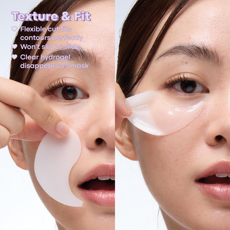A flexible hydrogel patch that hugs under-eyes or smile lines, delivering lightweight hydration and care to delicate areas. Designed to stay in place while ingredients gradually absorb for a refreshed, smoother-looking finish.