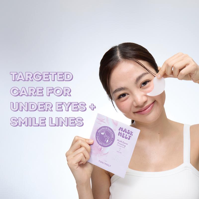 Say hello to your new skincare essential. TONYMOLY Mask Melt collection is an innovative hydrogel treatment that visibly firm, hydrate, and brighten skin — in just 3 hours or overnight. Powered by Korean technology, the multi zone patch is custom-shaped to hug specific zones like the under-eyes and smile lines, for a snug, no-slip fit. As the hydrogel melts into your skin and turns transparent, potent K-beauty ingredients are absorbed deep within delivering powerful results with zero mess. Wake up to smoother, plumper, glowier skin exactly where you need it most.