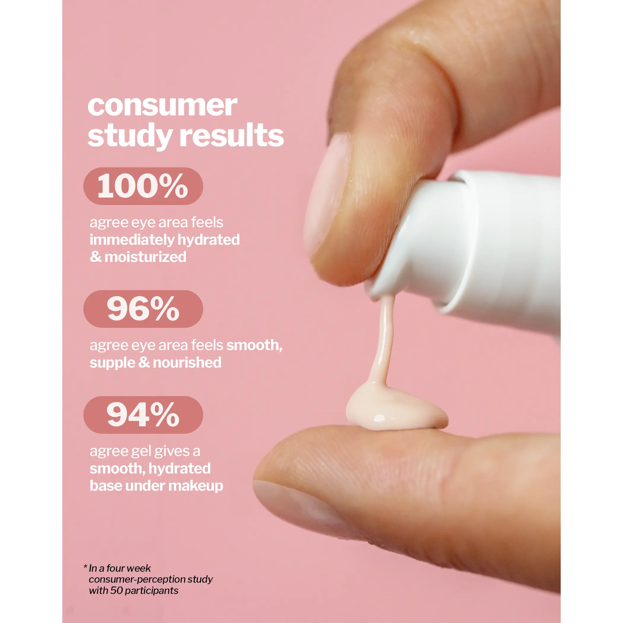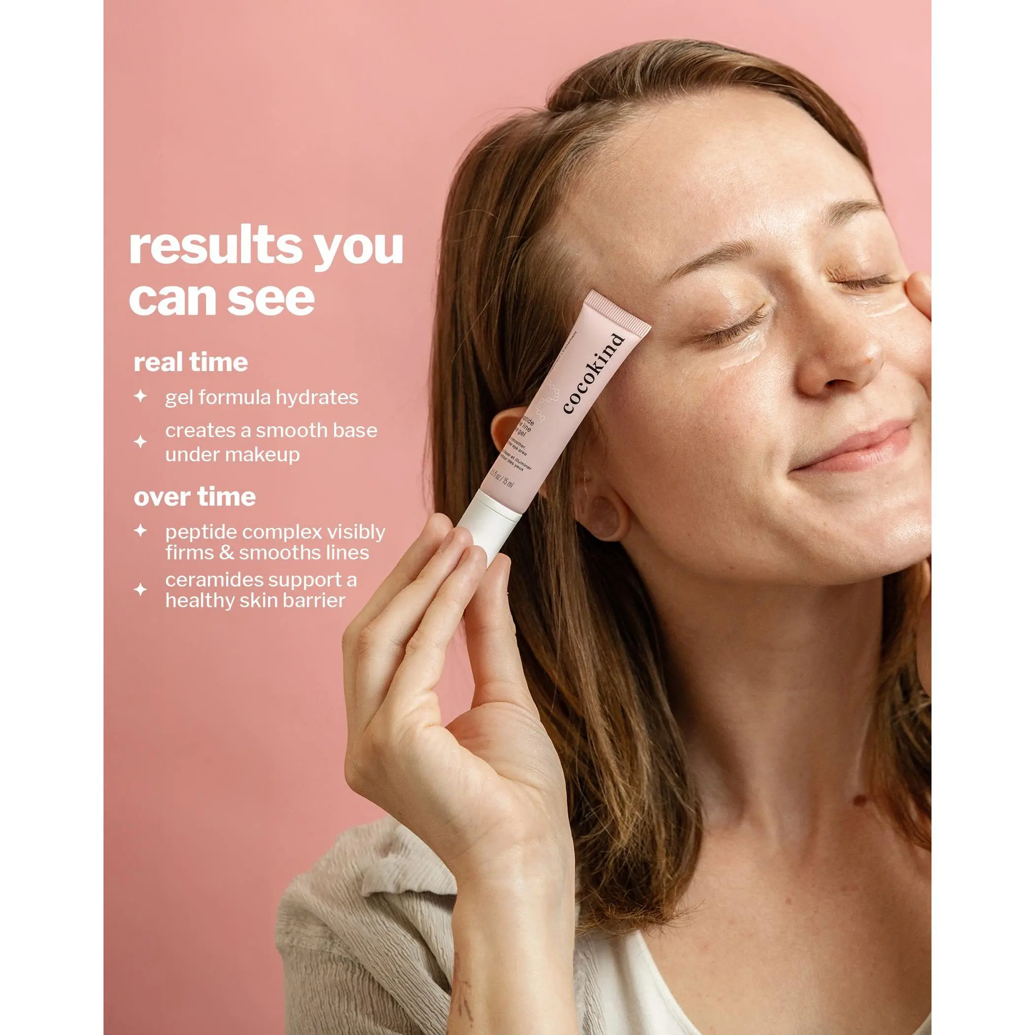 Very smooth, creamy soaks into skin amazingly. Very light. Feeling. Not like wearing a mask under eyes. Eyes do appear smoother than before I used. Left it on for 15 minutes under the cocokind reusable eye patches. Eyes feel softer.