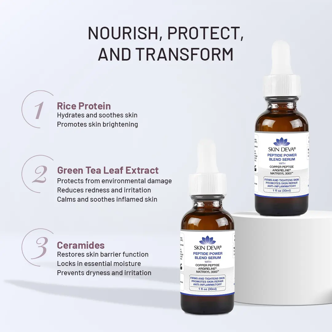 Enhance your skincare routine with the Peptide Power Blend Serum - Copper Peptide Anti-Aging Facial Serum, designed to provide a comprehensive solution for smoother, firmer, and more radiant skin.