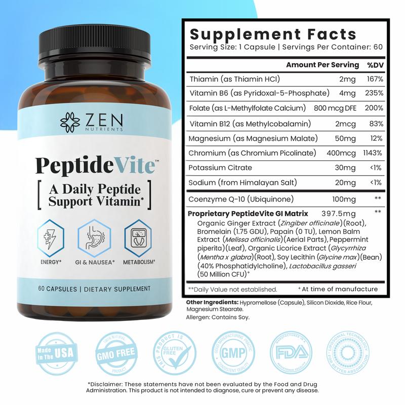 Crafted by physicians and pharmacists, PeptideVite is designed to support better health outcomes and overall wellness. It features a liposomal blend of 17 key vitamins, minerals, and herbs — formulated to reduce common side effects, promote adherence, and improve daily energy.