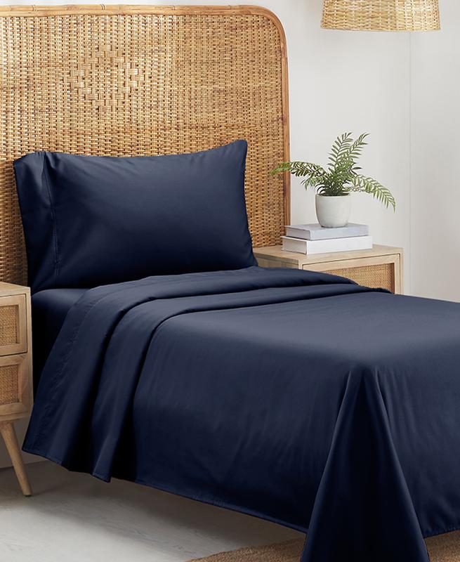 ·3-piece cotton sheet set with 1 top sheet (66" W x 100" L), 1 fitted sheet (39" W x 80" L + 14" Deep Pocket) and 1 standard/queen pillowcase with envelope closure (21" W x 30" L). Special anti-skid extra-wide elastic that stays put all night long.